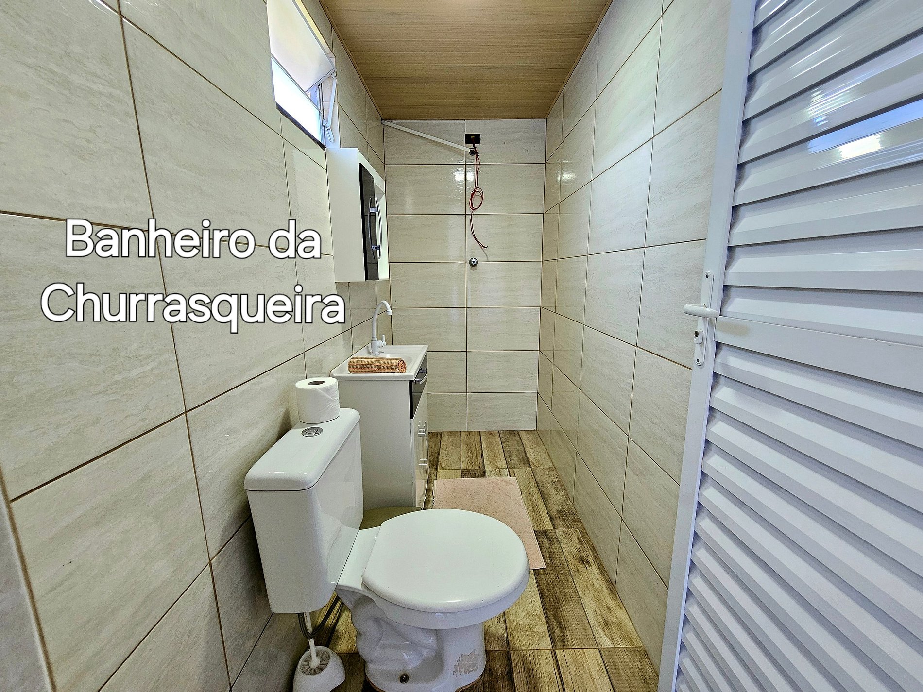 02 banheiros completos (com o da suíte) + 01 banheiro na churrasqueira - sem chuveiro)