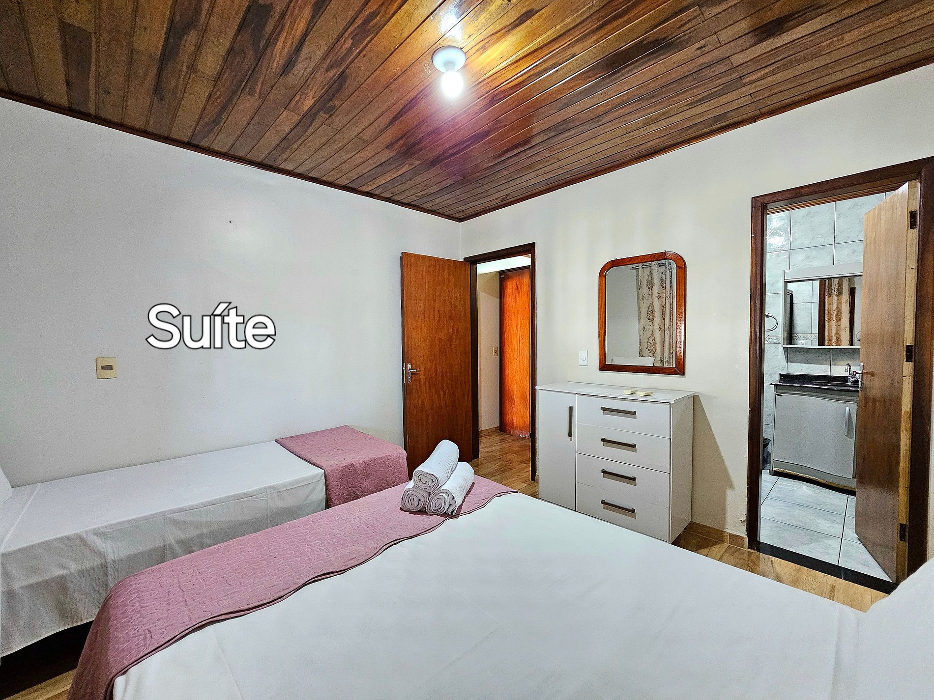 Quarto 02: Suíte com banheiro (01 cama de casal + 01 de solteiro)