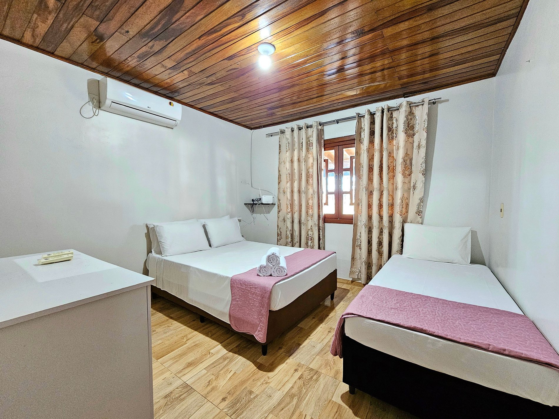 Quarto 01: 02 Ambientes - cada um com ar condicionado - Ambiente 1 (1 cama de casal + 1 de solteiro), Ambiente 2 (1 cama de casal).