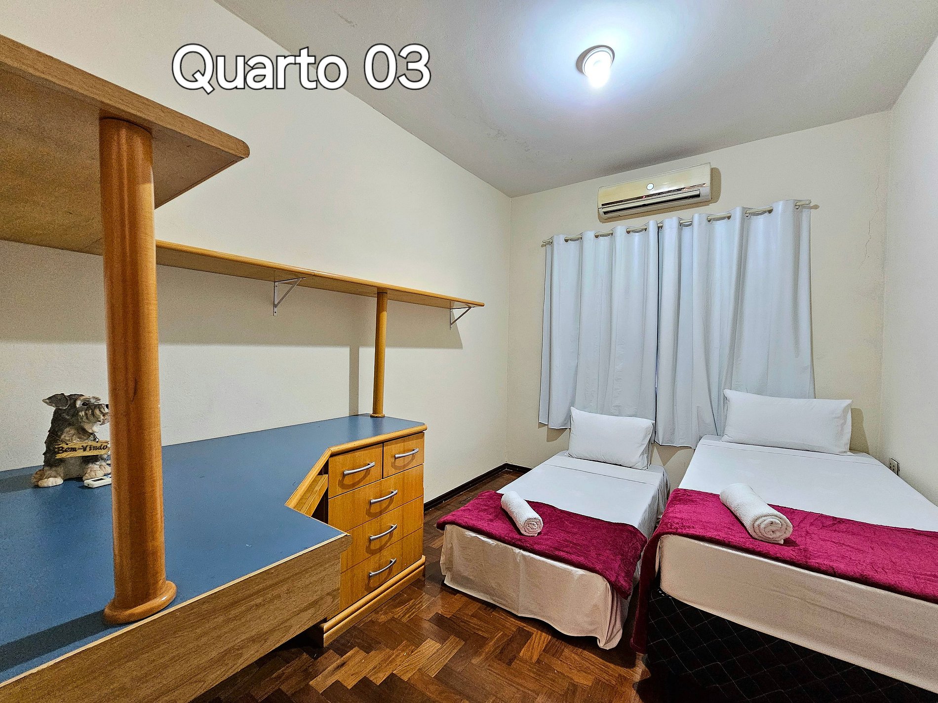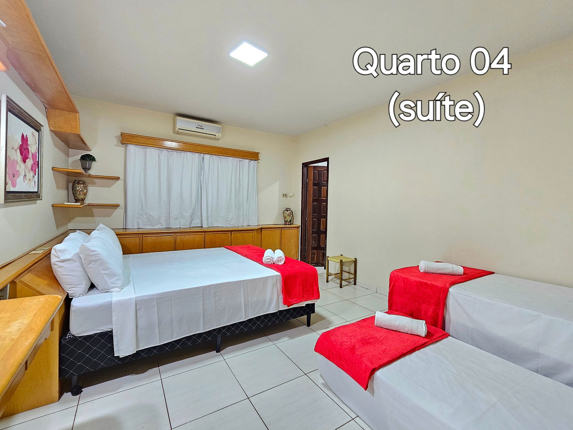 Quarto 04: 01 cama de casal + 03 camas de solteiro (Suíte com banheiro)