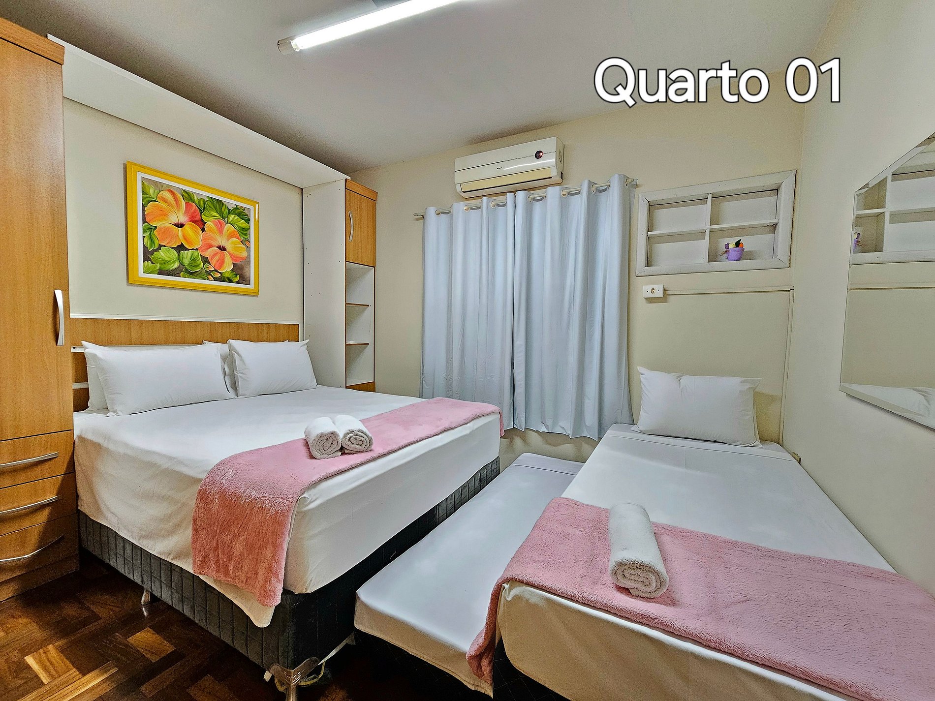 Quarto 01: 01 cama de casal + 01 cama de solteiro