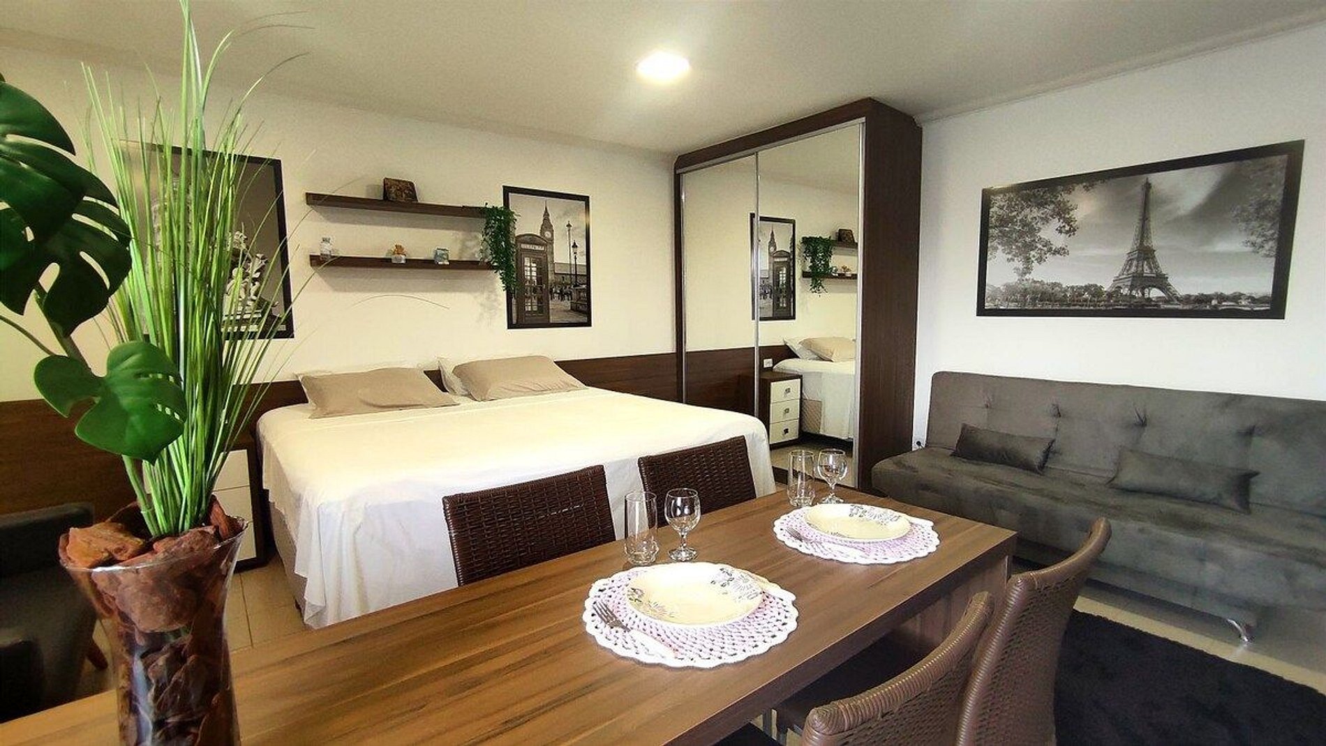 Lindo Studio novinho no coração de Foz do Iguaçu, cama de primeiríssima qualidade para casal podendo ser transformada em 2 camas de solteiro. Wifi e garagem incluído. Tudo muito próximo, como farmácia, padaria 24h, restaurantes, supermercados, terminal de onibus, shopping, comercio em geral. 20 minutos das Cataratas, 15 minutos do Paraguai/Itaipu. Ficamos em um prédio residencial e tranquilo, segundo andar sem elevador. Somos anfitriões comprometidos em fazer da sua estadia a melhor experiência