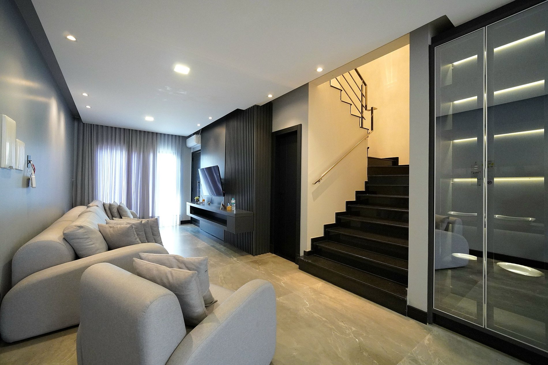 Área de estar com sofá/cadeira