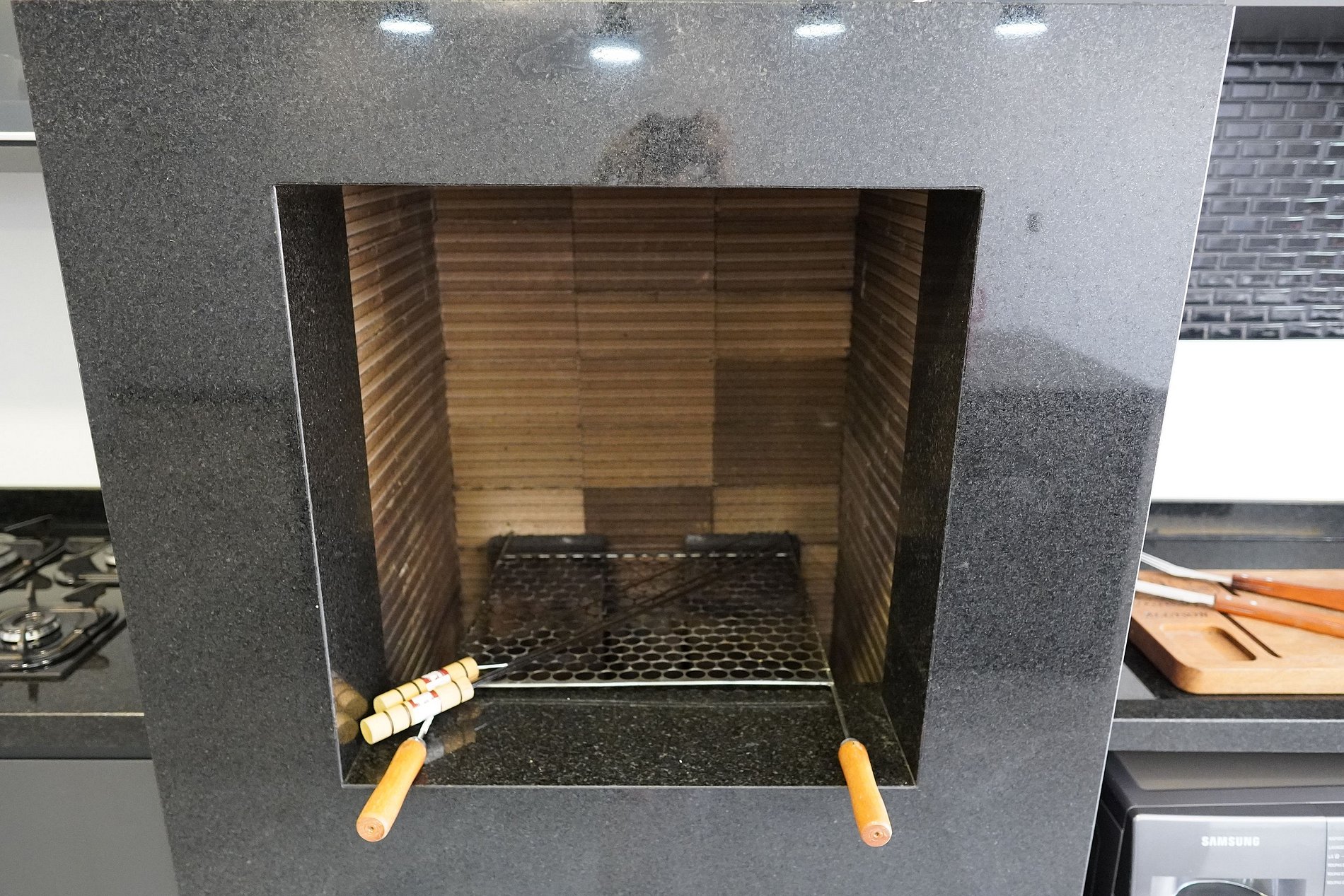 Churrasqueira equipada com grelhas e espetos