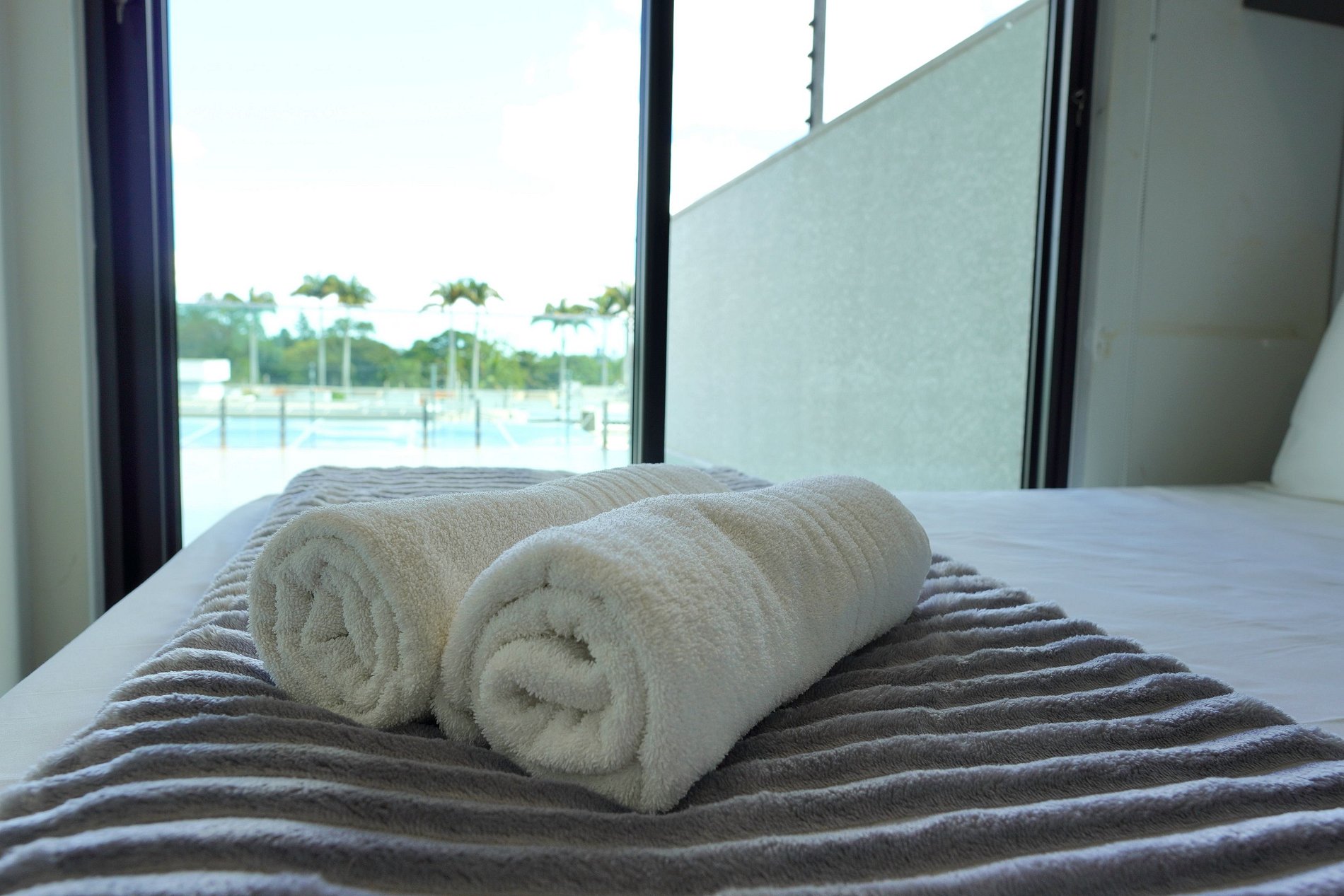 Toalhas de banho (01 por hospede, independente da quantidade de diárias) e 1 de rosto por banheiro