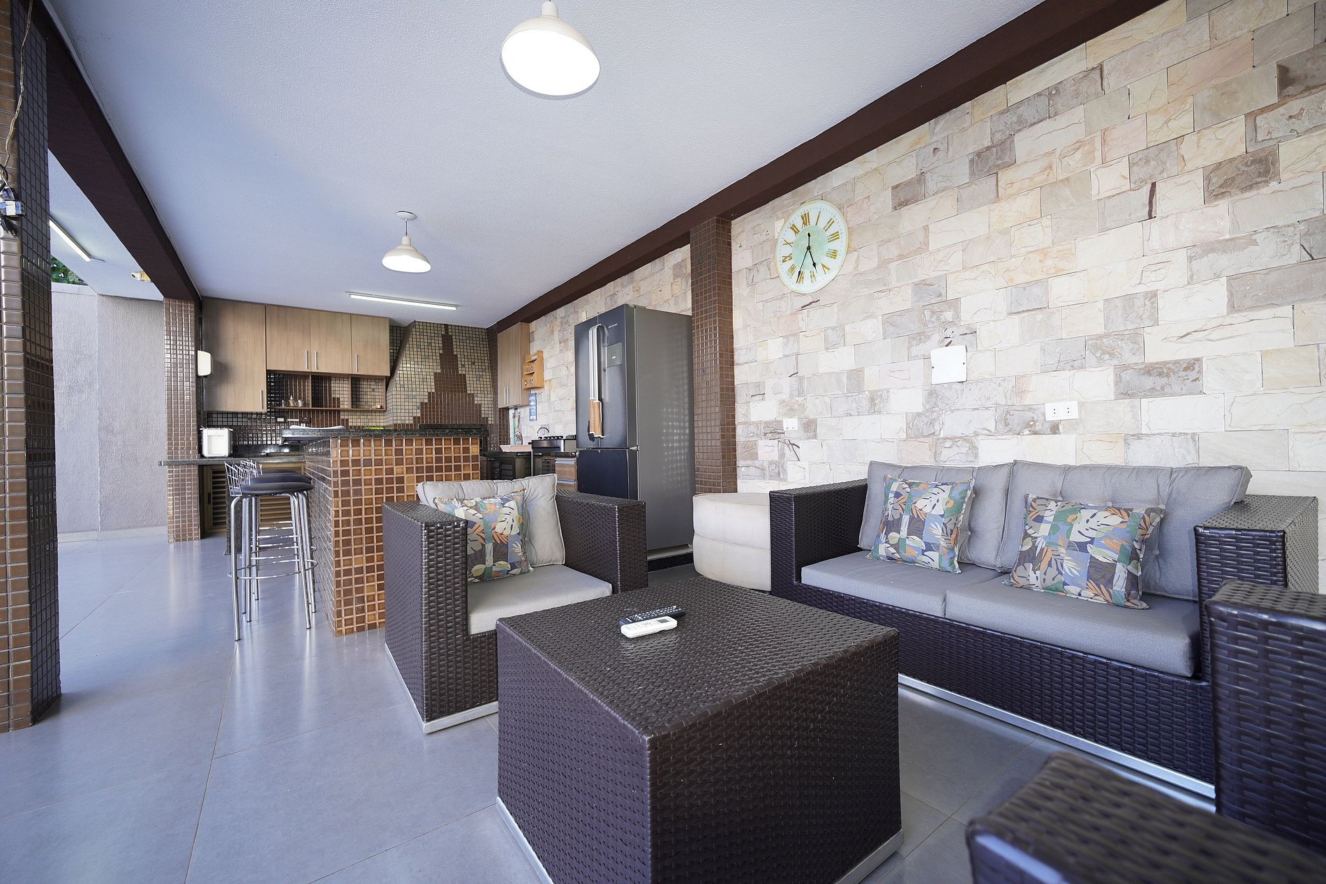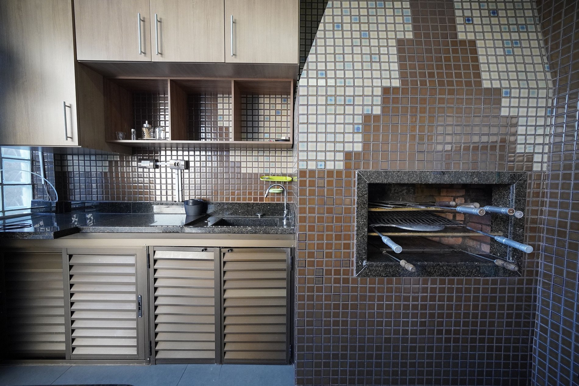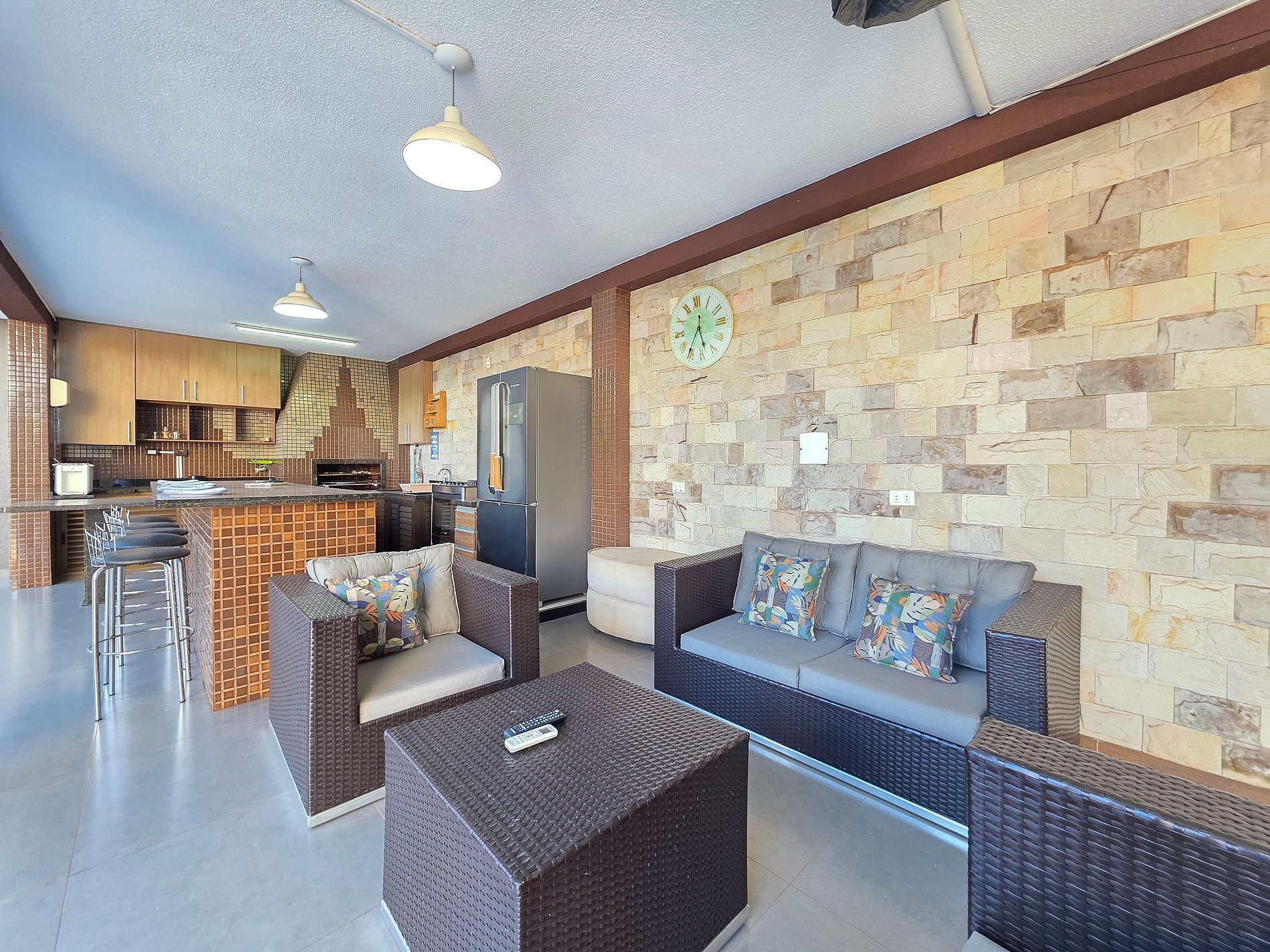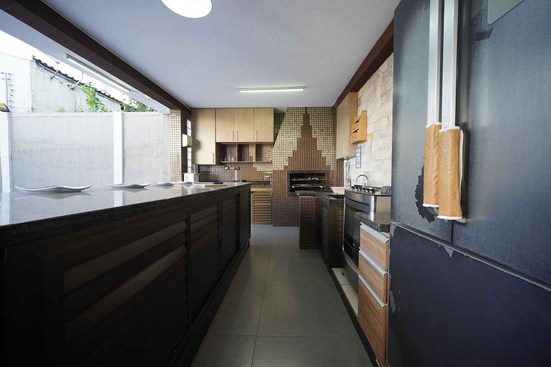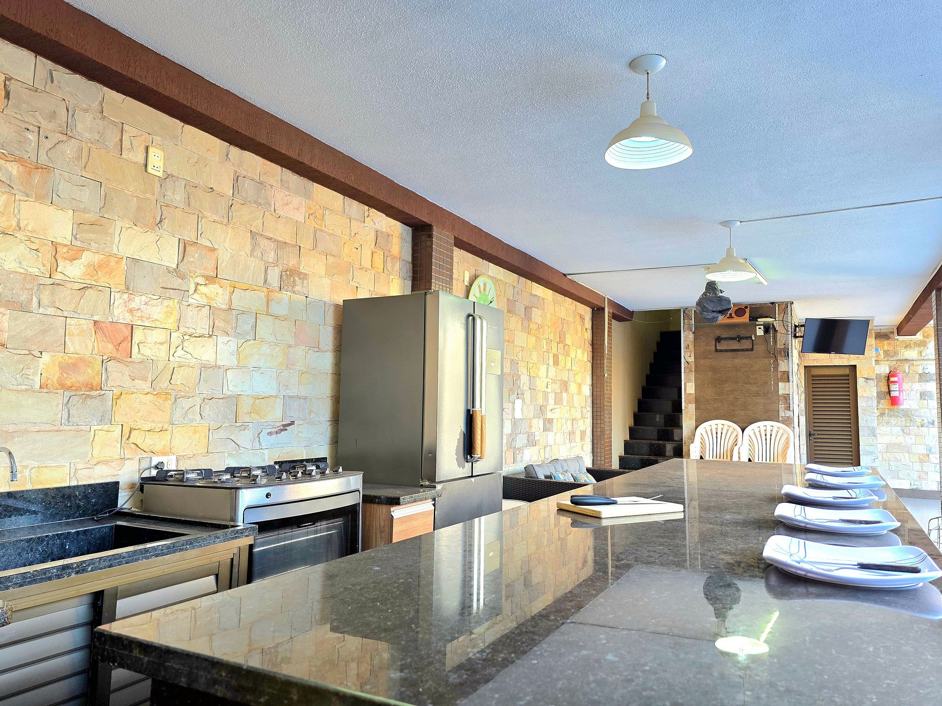 Área externa - Espaço gourmet com churrasqueira equipada com grelha e espetos. (Com Tv)