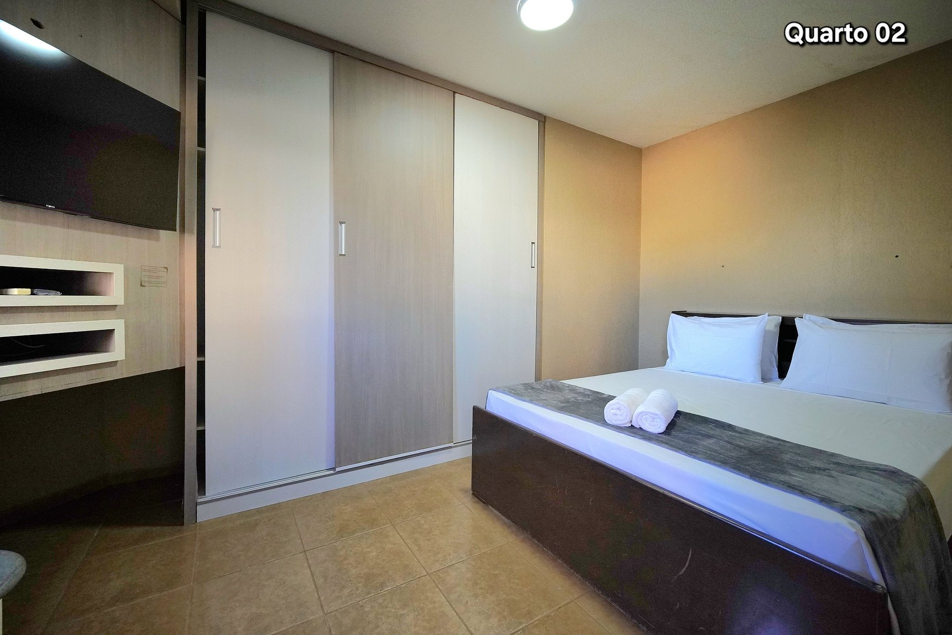 Quarto 02: (Suíte) 01 cama de casal + 01 cama de solteiro (com ar condicionado)