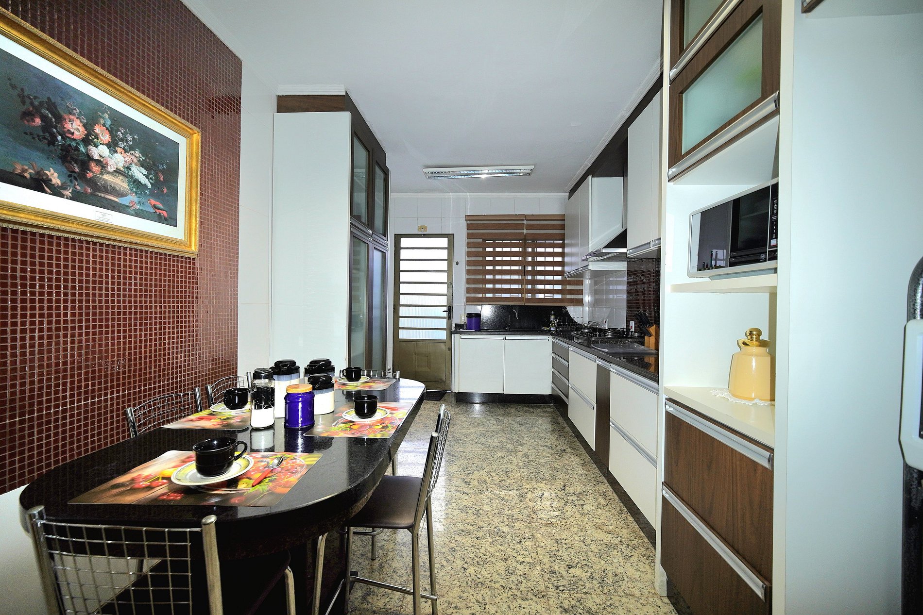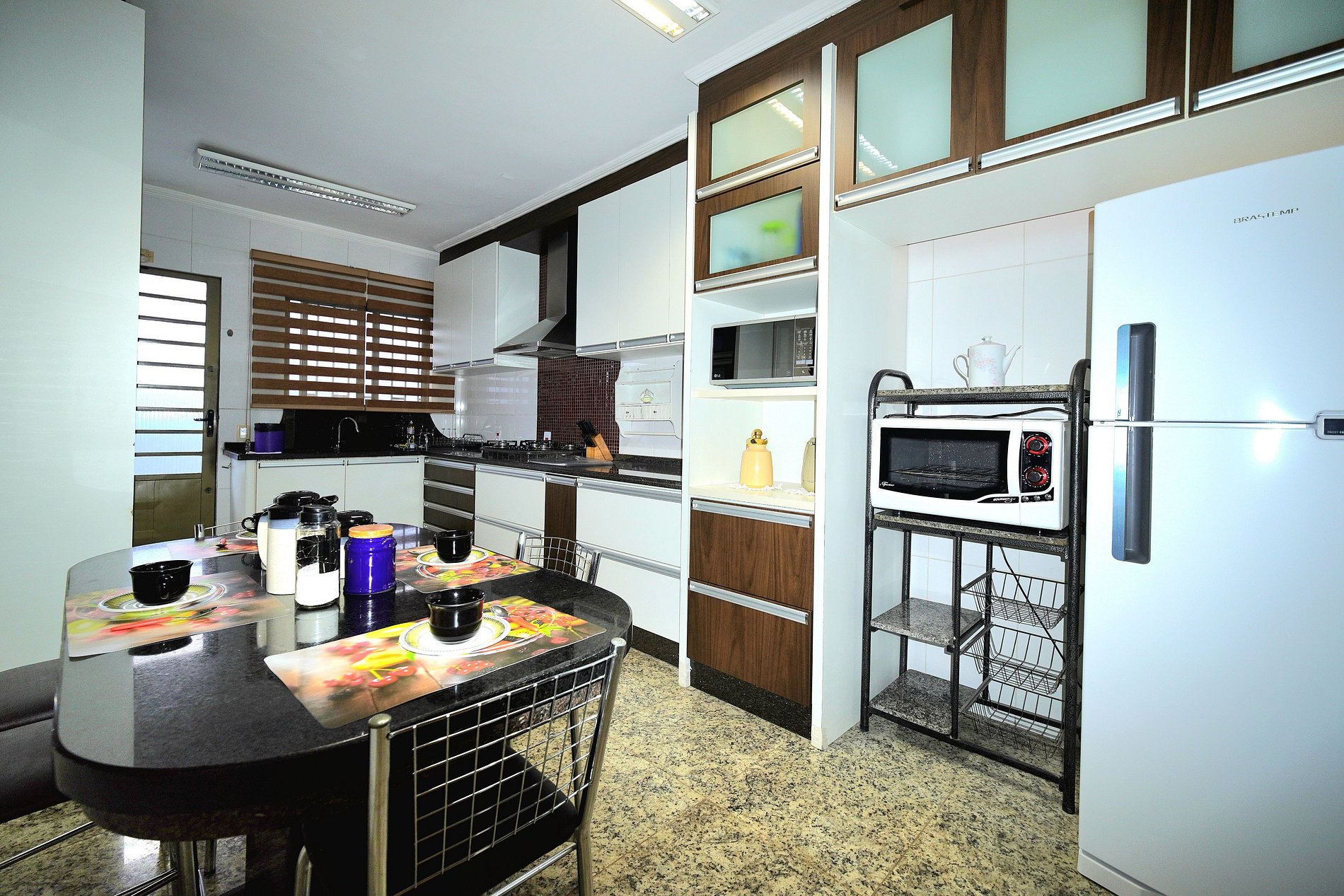 Cozinha - completa com todos os utensílios e louças. Sanduicheira, liquidificador, torradeira, forno elétrico, chaleira elétrica e filtro de água.