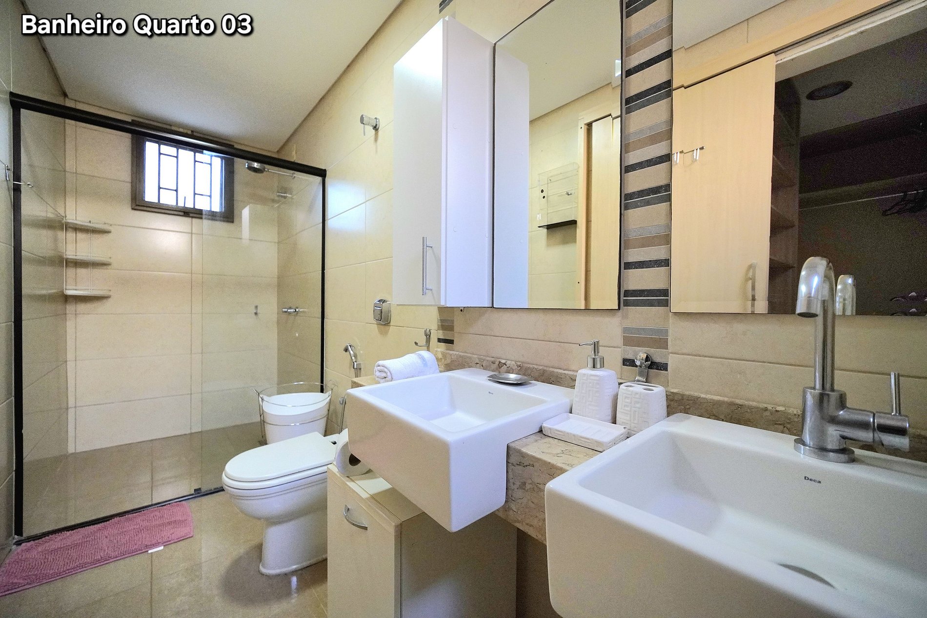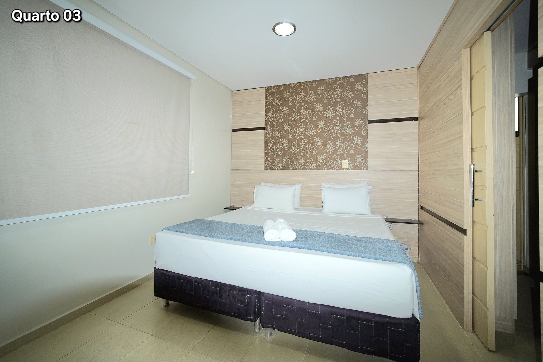 Quarto 03: (Suíte) 01 cama de casal + 01 cama de solteiro (com ar condicionado)