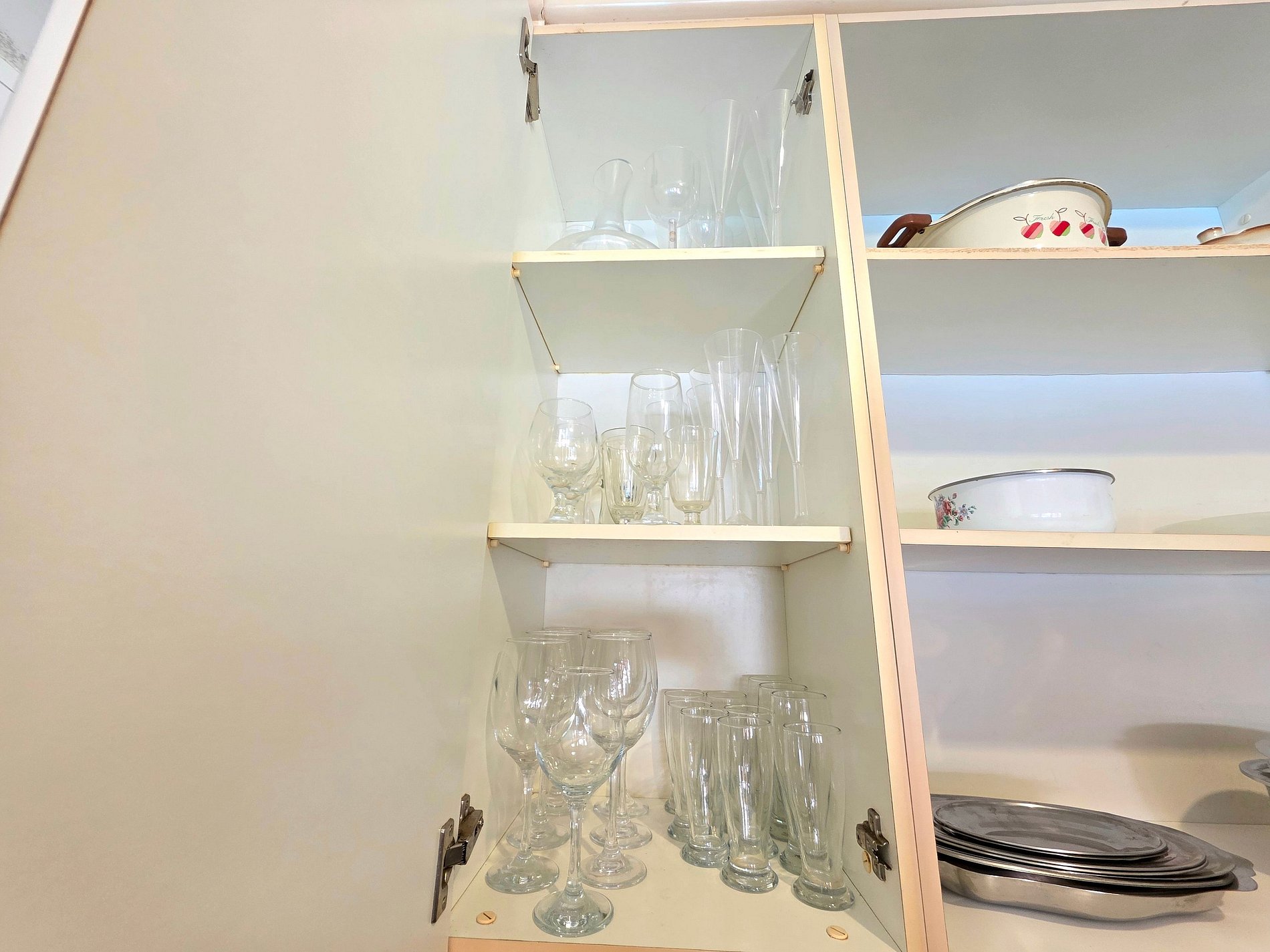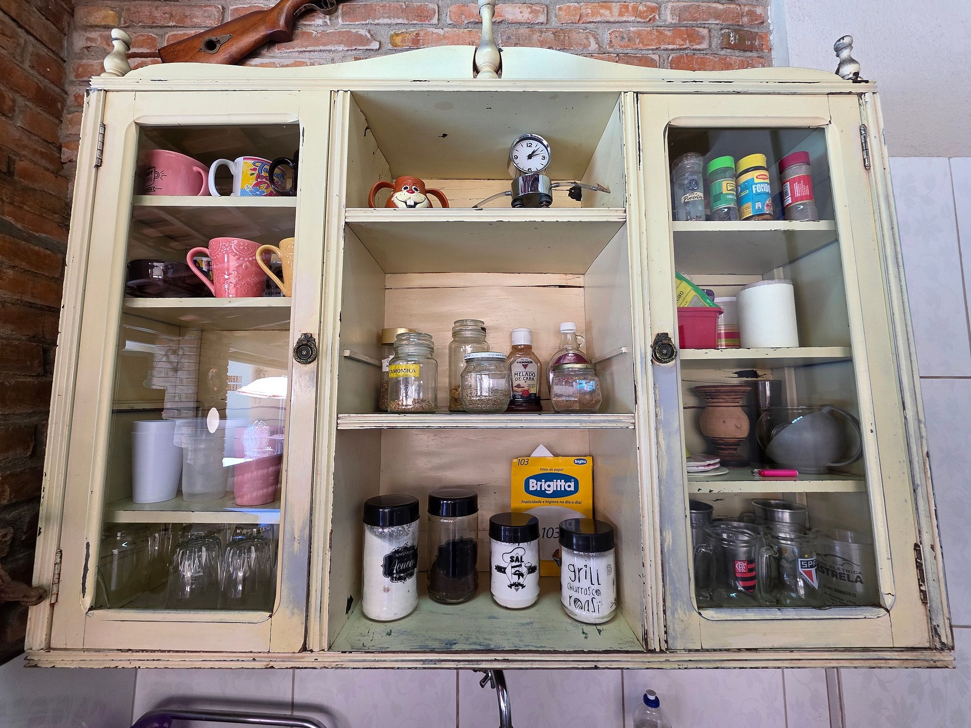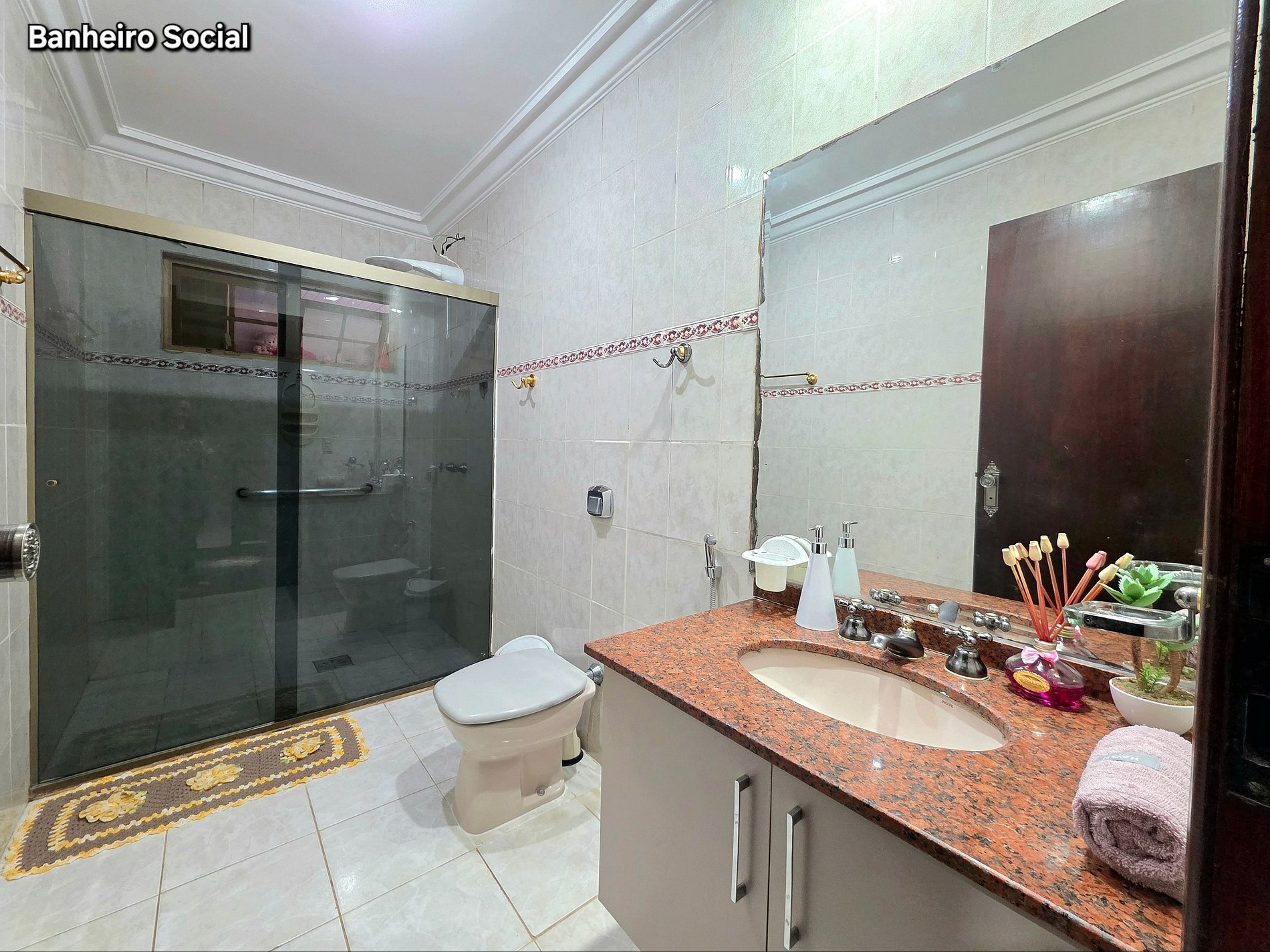 Andar debaixo Sala de estar com sala de jantar (com ar condicionado)01 lavabo Televisão com caixinha múltiplos canaisCozinha completa com utensílios e louças para as refeições, microondas, forno, liquidificador, sanduicheira.