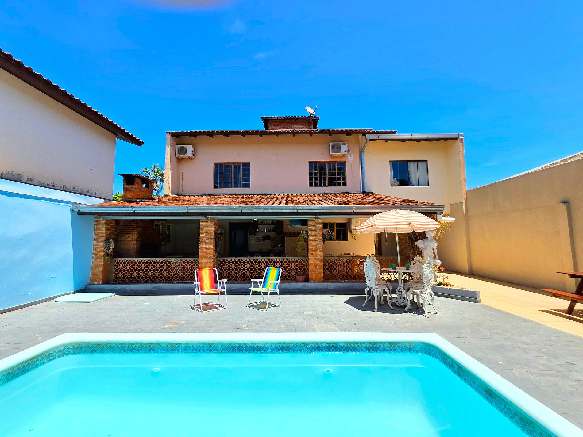Excelente sobrado com piscina em um bairro familiar, cercado por conveniências como supermercados, farmácias, padarias e shopping. A localização é perfeita: 15 a 20 minutos das Cataratas e Paraguai, 5 minutos da fronteira com a Argentina e 5 minutos do Centro de Foz. A casa é totalmente mobiliada, com roupas de cama, utensílios domésticos e uma ampla varanda com piscina e churrasqueira. 4 quartos e sala climatizados, garagem para 4 carros, ótimo custo-benefício em Foz do Iguaçu!