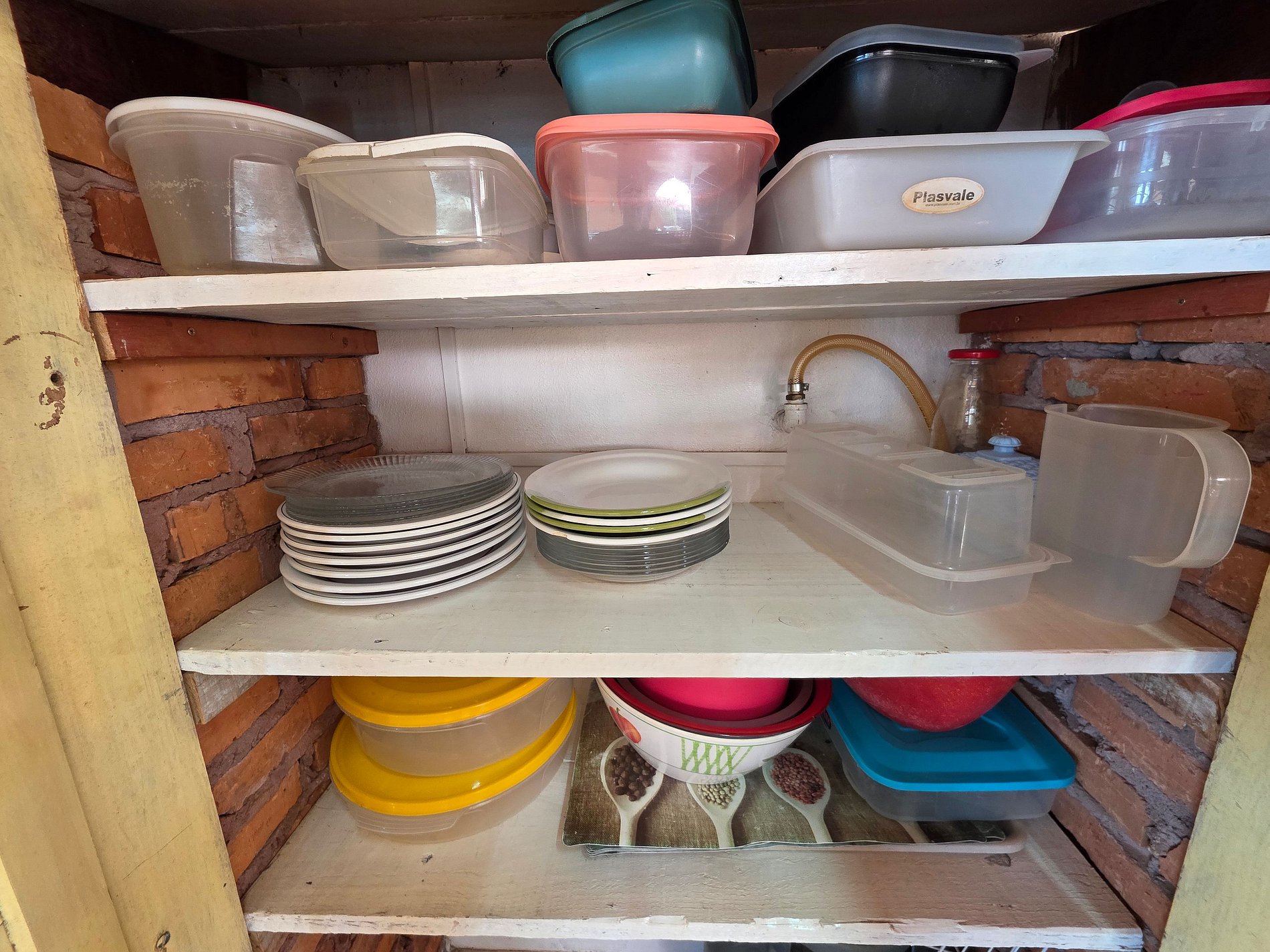 Andar debaixo Sala de estar com sala de jantar (com ar condicionado)01 lavabo Televisão com caixinha múltiplos canaisCozinha completa com utensílios e louças para as refeições, microondas, forno, liquidificador, sanduicheira.