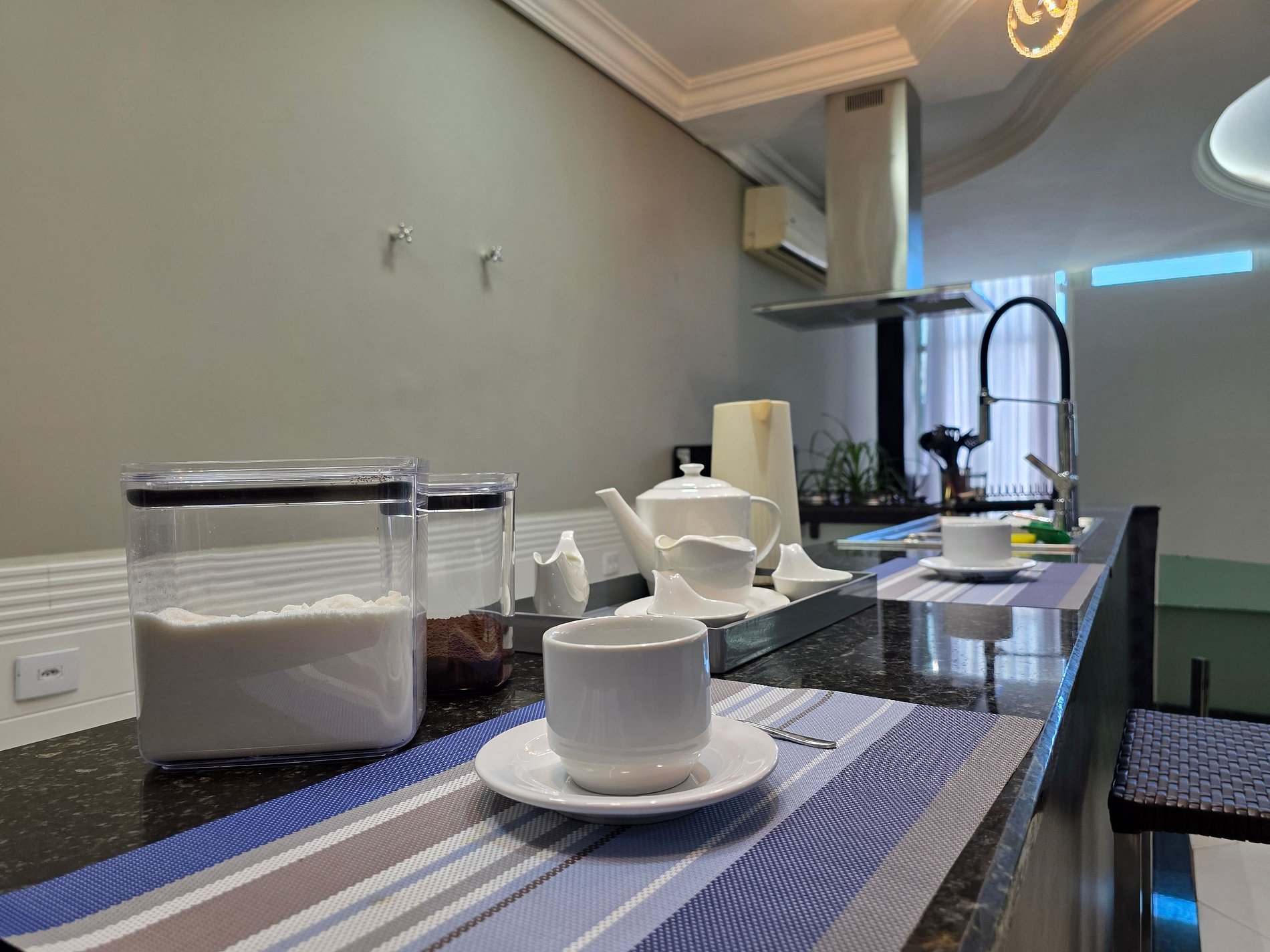 Cozinha - completa com todos os utensílios e louças. Sanduicheira, liquidificador, torradeira, forno elétrico, chaleira elétrica.