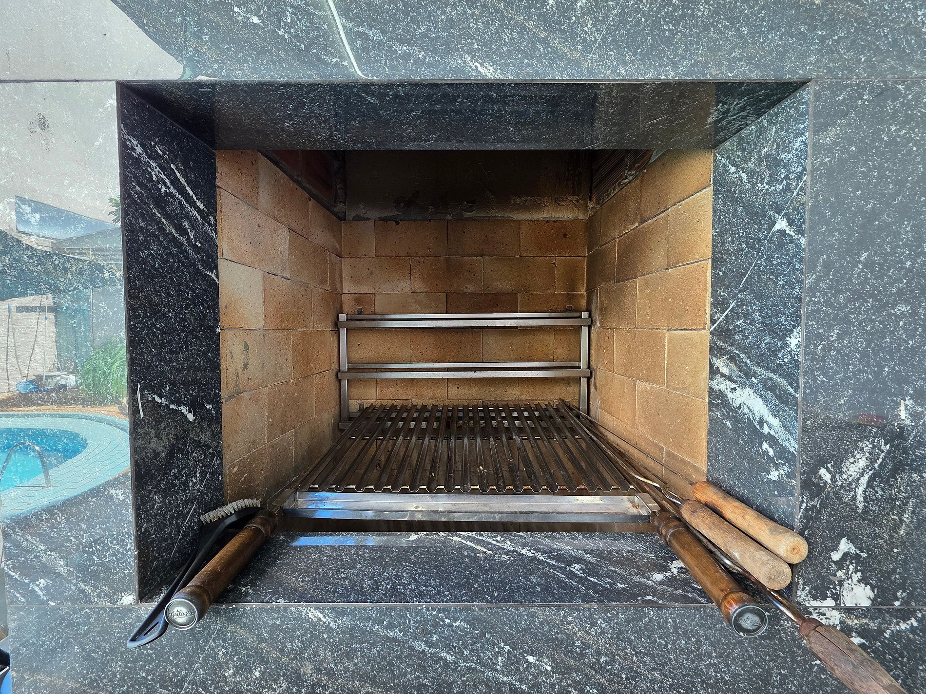 Área externa - Espaço gourmet com churrasqueira equipada com grelha e espetos. (Com Smart tv)