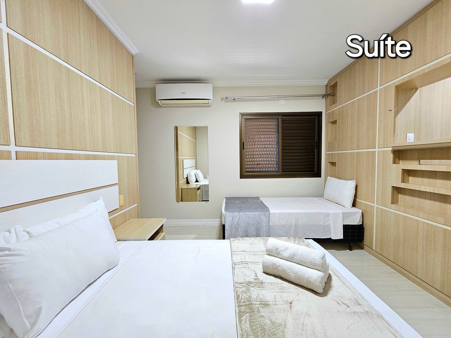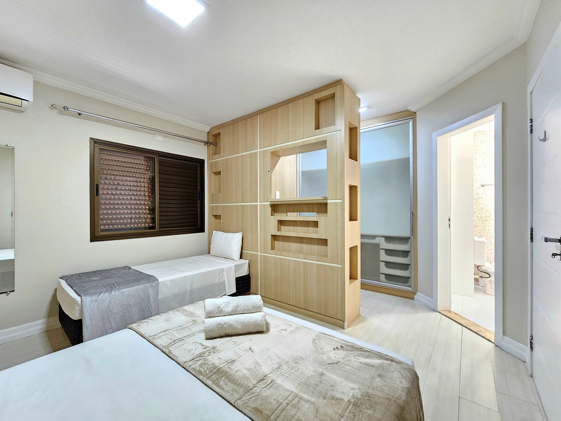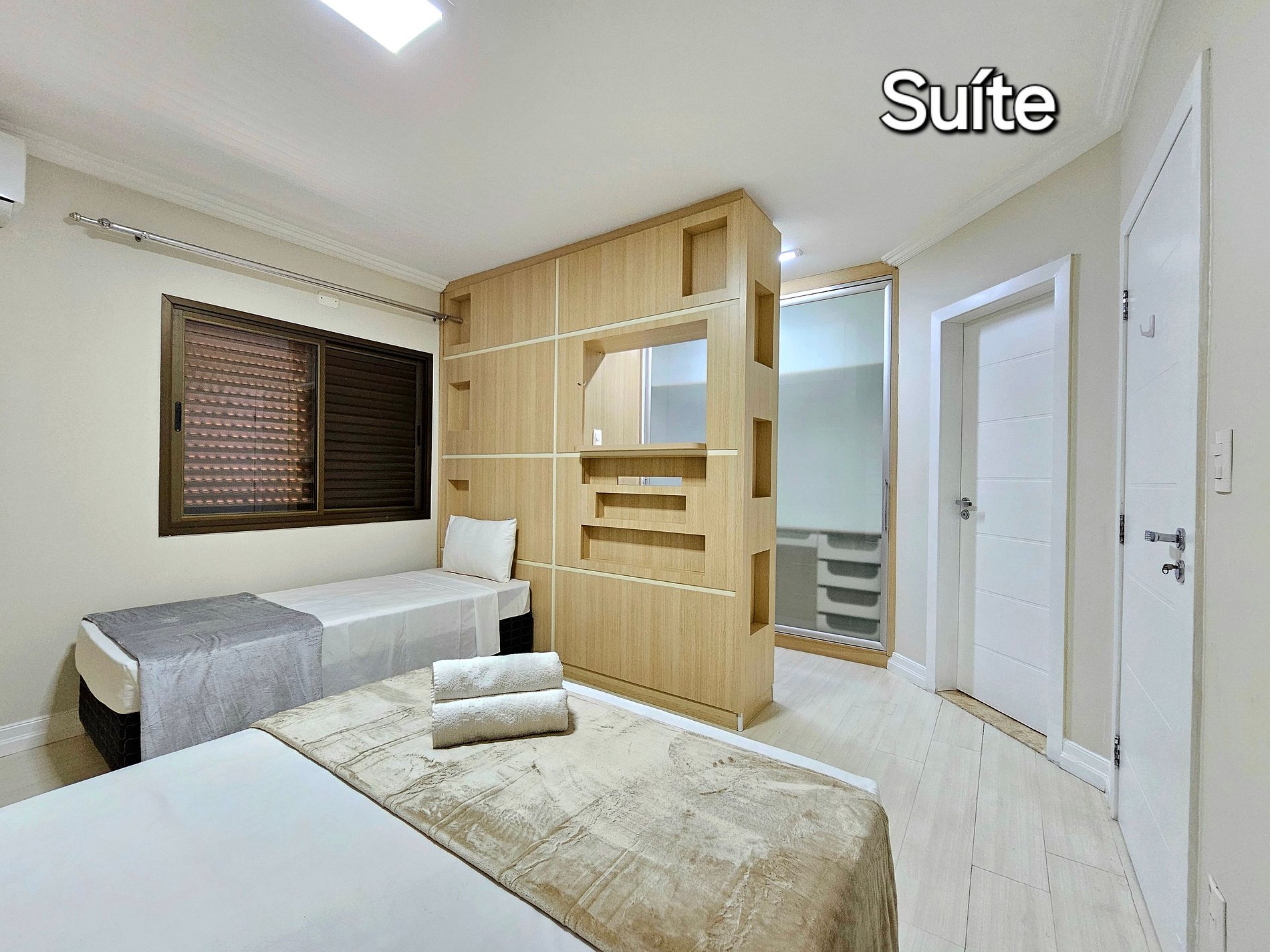 Suite 01: 01 cama casal + 01 cama solteiro (com banheiro) + 01 closet