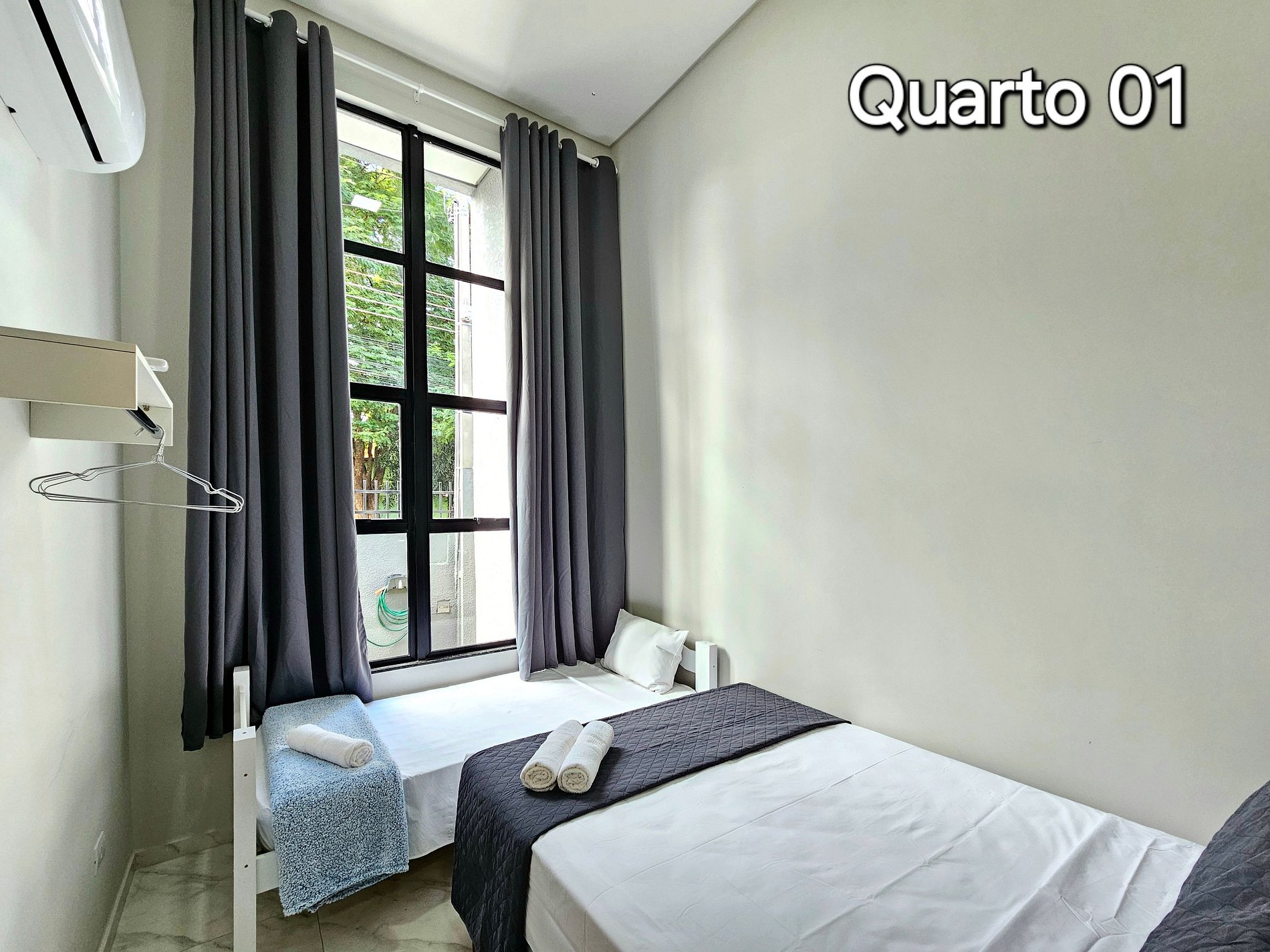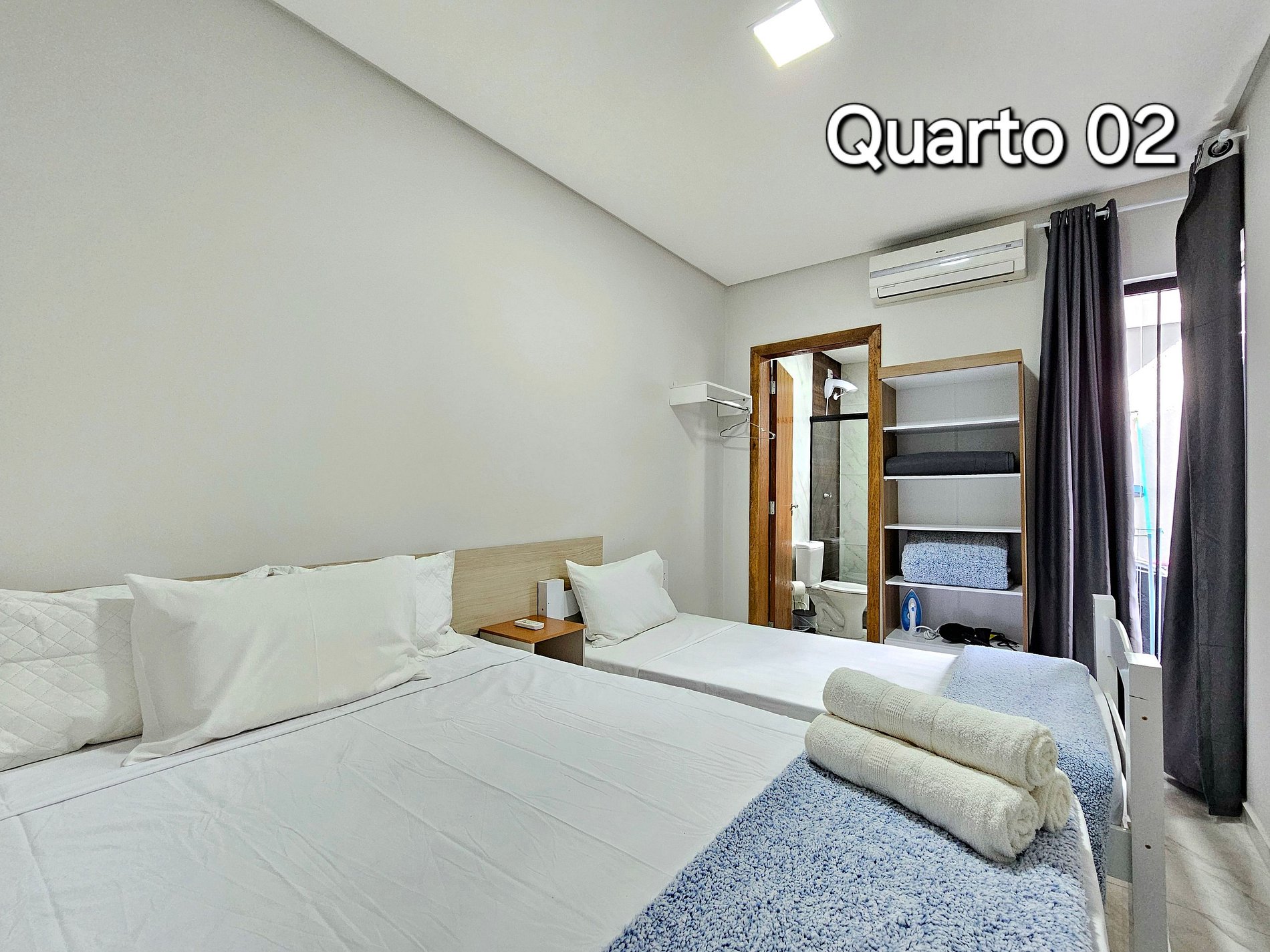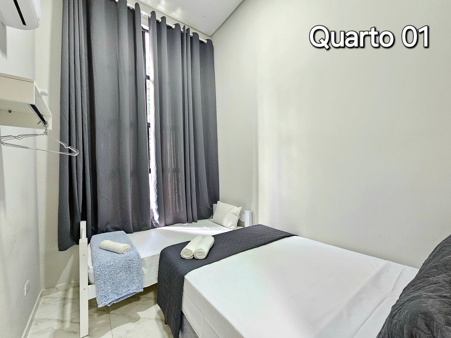 01 quarto com 01 cama de casal + 01 de solteiro
