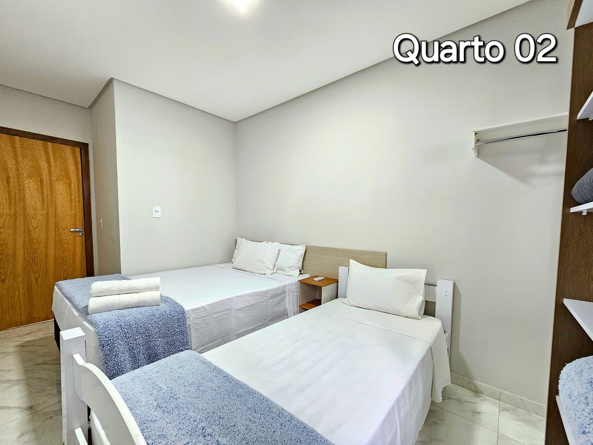 01 quarto com 01 cama de casal + 01 de solteiro