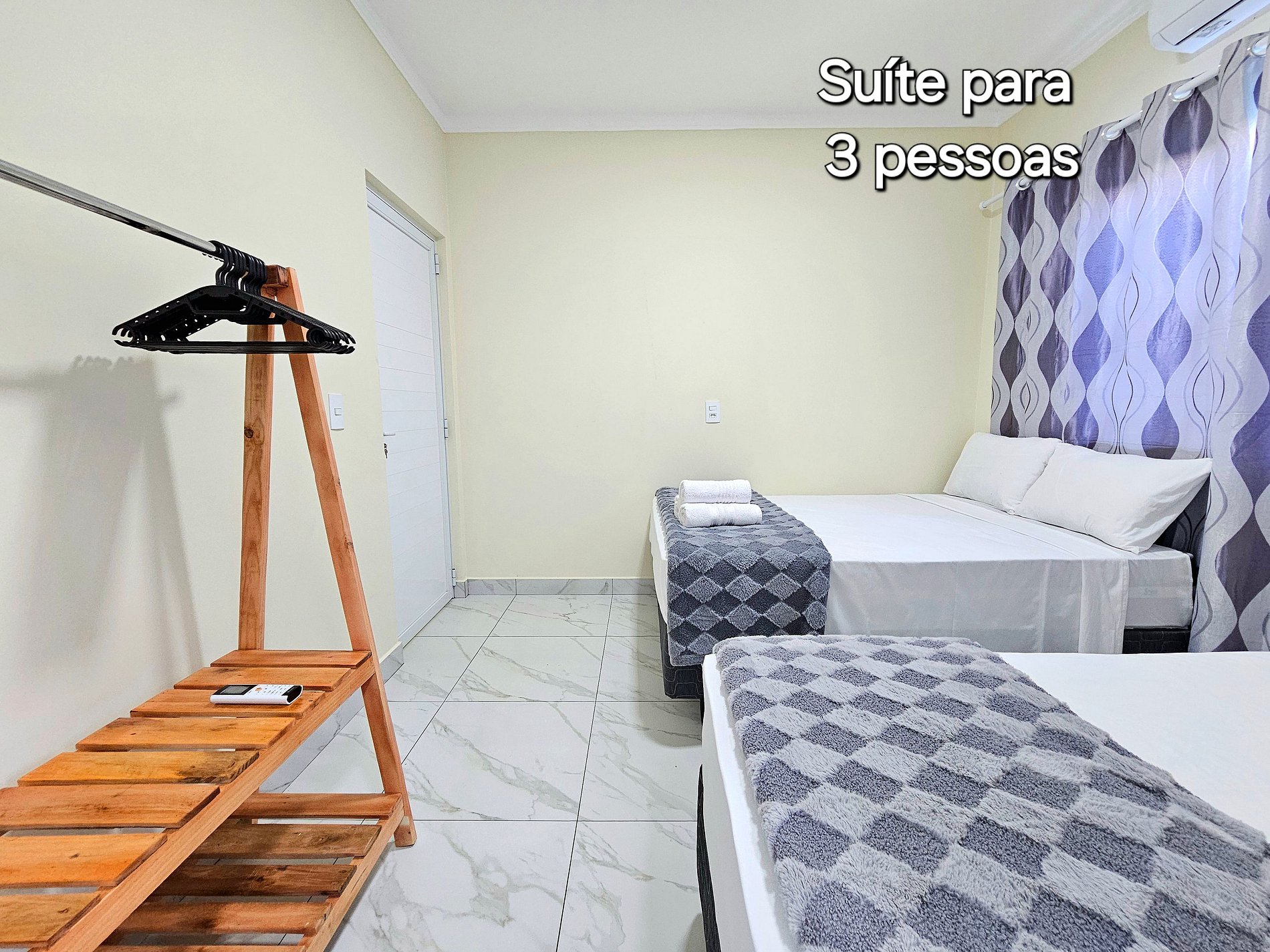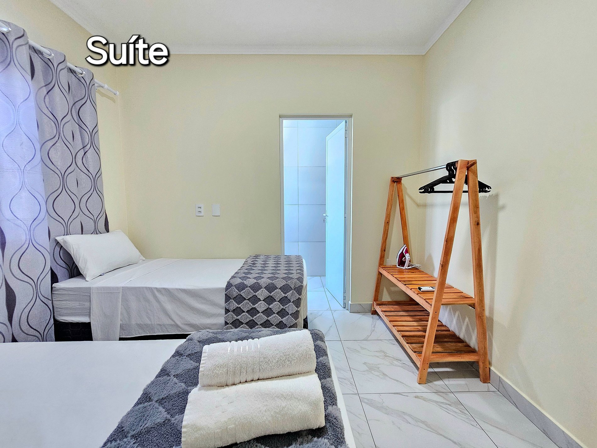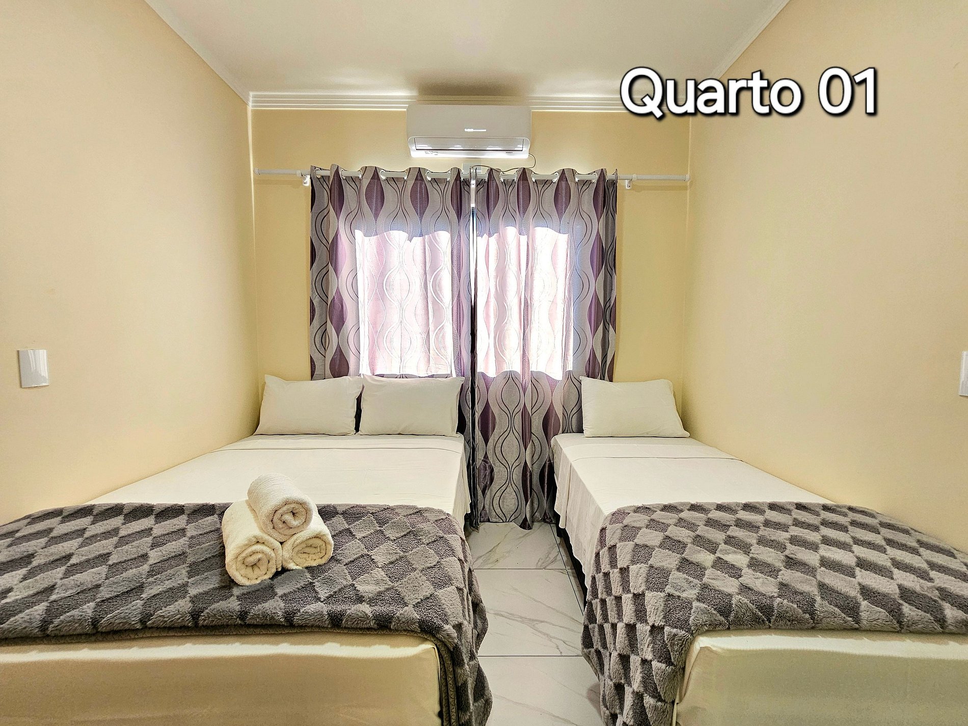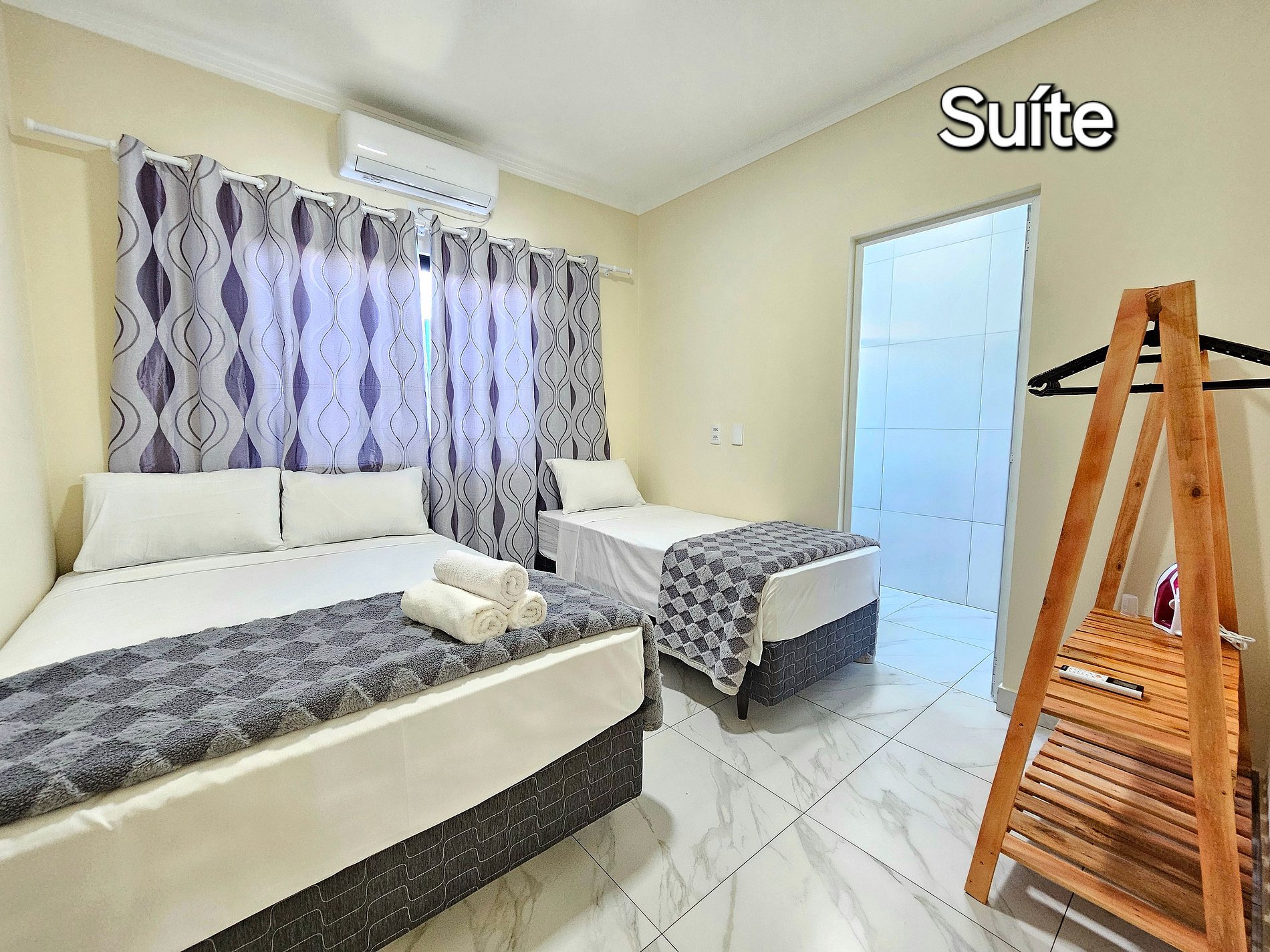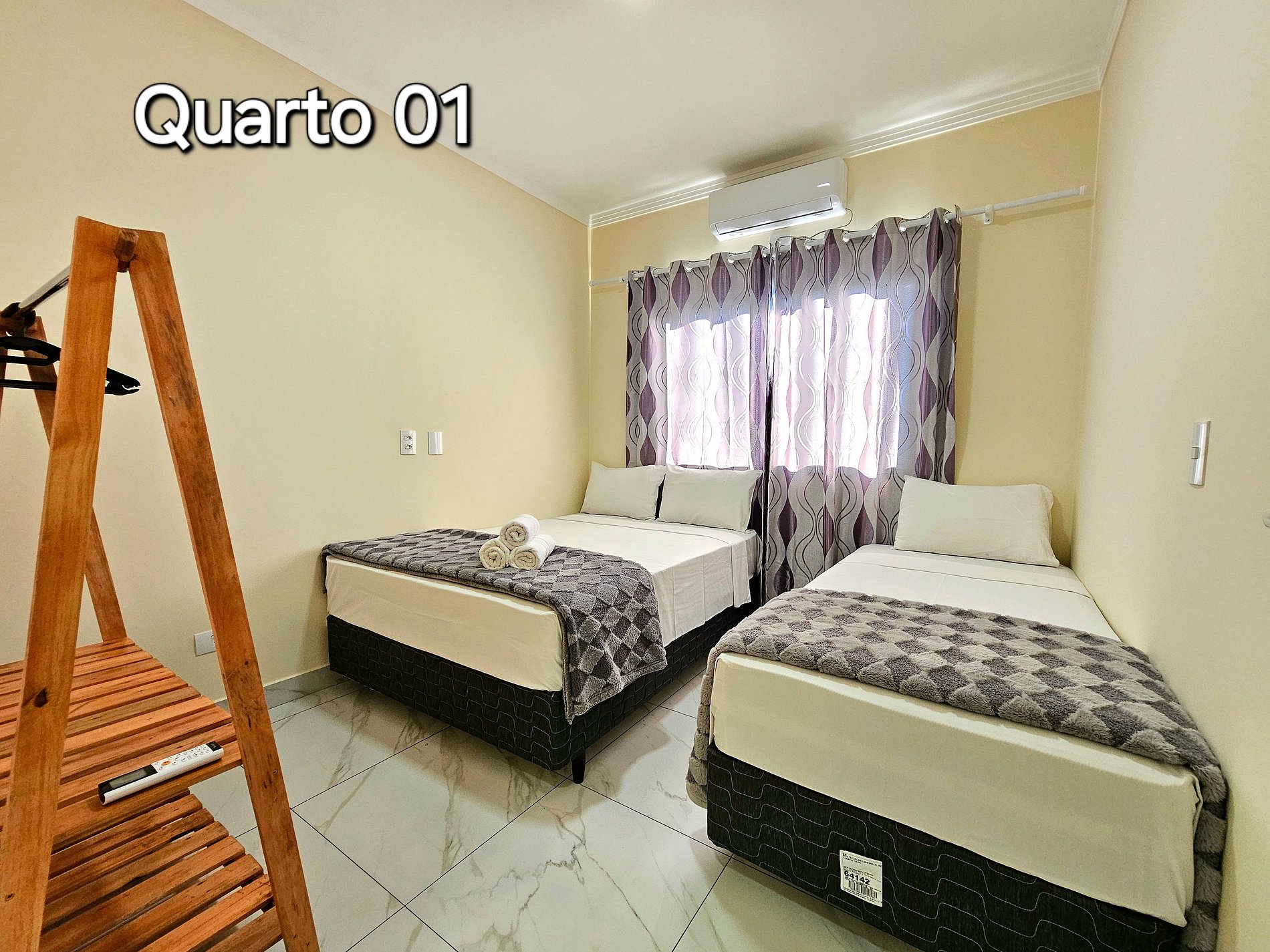 Quarto 01: Suíte com 01 cama de casal e 01 cama de solteiro (com banheiro)