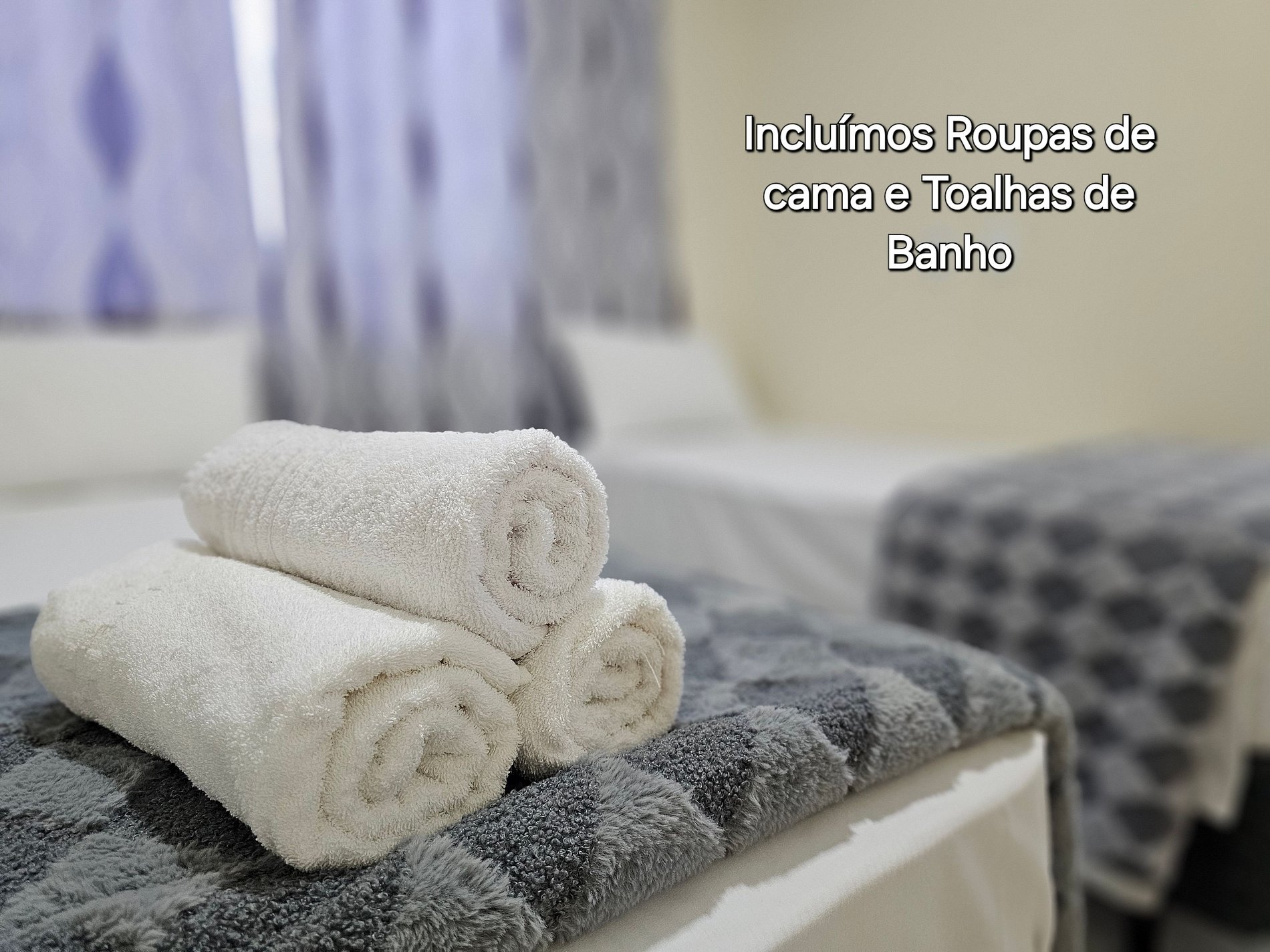 Incluimos roupas de cama, 01 toalha de banho por pessoa e 01 coberta por cama.