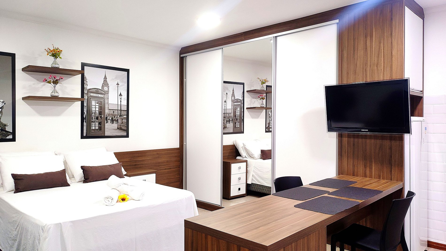 Lindos Studios no centro de Foz do Iguaçu, amplos com Wifi e garagem incluído. Para 1 até 4 pessoas. Recebemos grupos de até 20 hospedes. Tudo muito próximo, como farmácia, padaria 24h, restaurantes, supermercados, terminal de onibus, shopping, comercio em geral. 15/20 minutos das Cataratas, 15 minutos do Paraguai/Itaipu. Ficamos em um prédio residencial e tranquilo. Não temos elevador. Somos anfitriões comprometidos em fazer da sua estadia a melhor experiência.