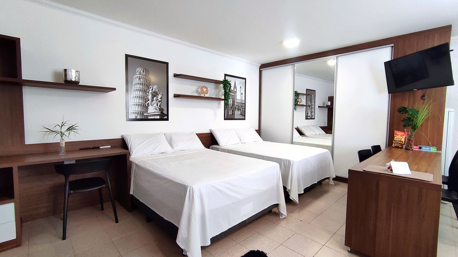 Lindos Studios no centro de Foz do Iguaçu, amplos com Wifi e garagem incluído. Para 1 até 4 pessoas. Recebemos grupos de até 20 hospedes. Tudo muito próximo, como farmácia, padaria 24h, restaurantes, supermercados, terminal de onibus, shopping, comercio em geral. 15/20 minutos das Cataratas, 15 minutos do Paraguai/Itaipu. Ficamos em um prédio residencial e tranquilo. Não temos elevador. Somos anfitriões comprometidos em fazer da sua estadia a melhor experiência.
