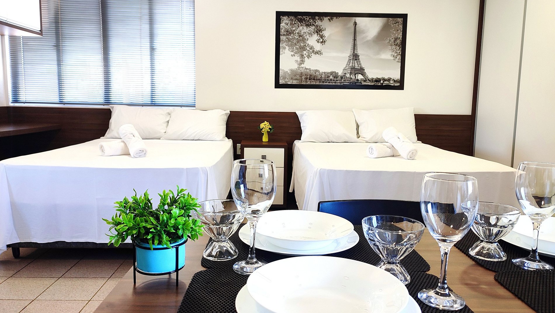 Lindo Studio no centro de Foz do Iguaçu, super amplo com 2 camas de casal para 4 pessoas. 44 metros quadrados. Wifi e garagem incluído. Tudo muito próximo, como farmácia, padaria 24h, restaurantes, supermercados, terminal de onibus, shopping, comercio em geral. 15/20 minutos das Cataratas, 15 minutos do Paraguai/Itaipu. Ficamos em um prédio residencial e tranquilo, segundo andar sem elevador. Somos anfitriões comprometidos em fazer da sua estadia a melhor experiência.