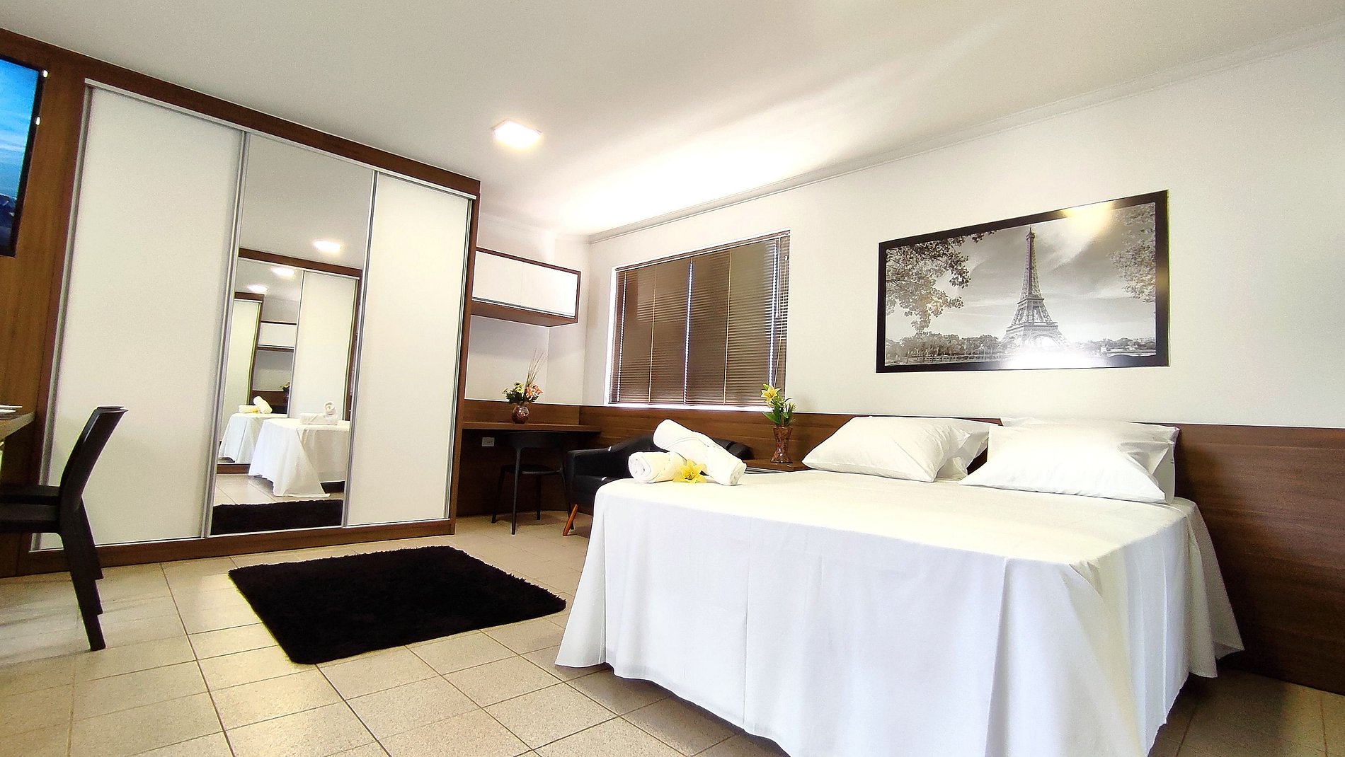 Lindo Studio no centro de Foz do Iguaçu, amplo com 30 metros quadrados. Wifi e garagem incluído. Tudo muito próximo, como farmácia, padaria 24h, restaurantes, supermercados, terminal de onibus, shopping, comercio em geral. 15/20 minutos das Cataratas, 15 minutos do Paraguai/Itaipu. Ficamos em um prédio residencial e tranquilo, primeiro andar sem elevador. Somos anfitriões comprometidos em fazer da sua estadia a melhor experiência.