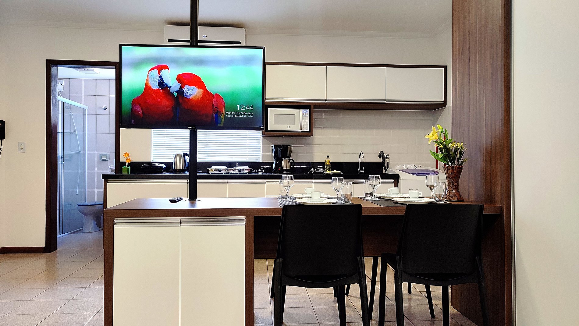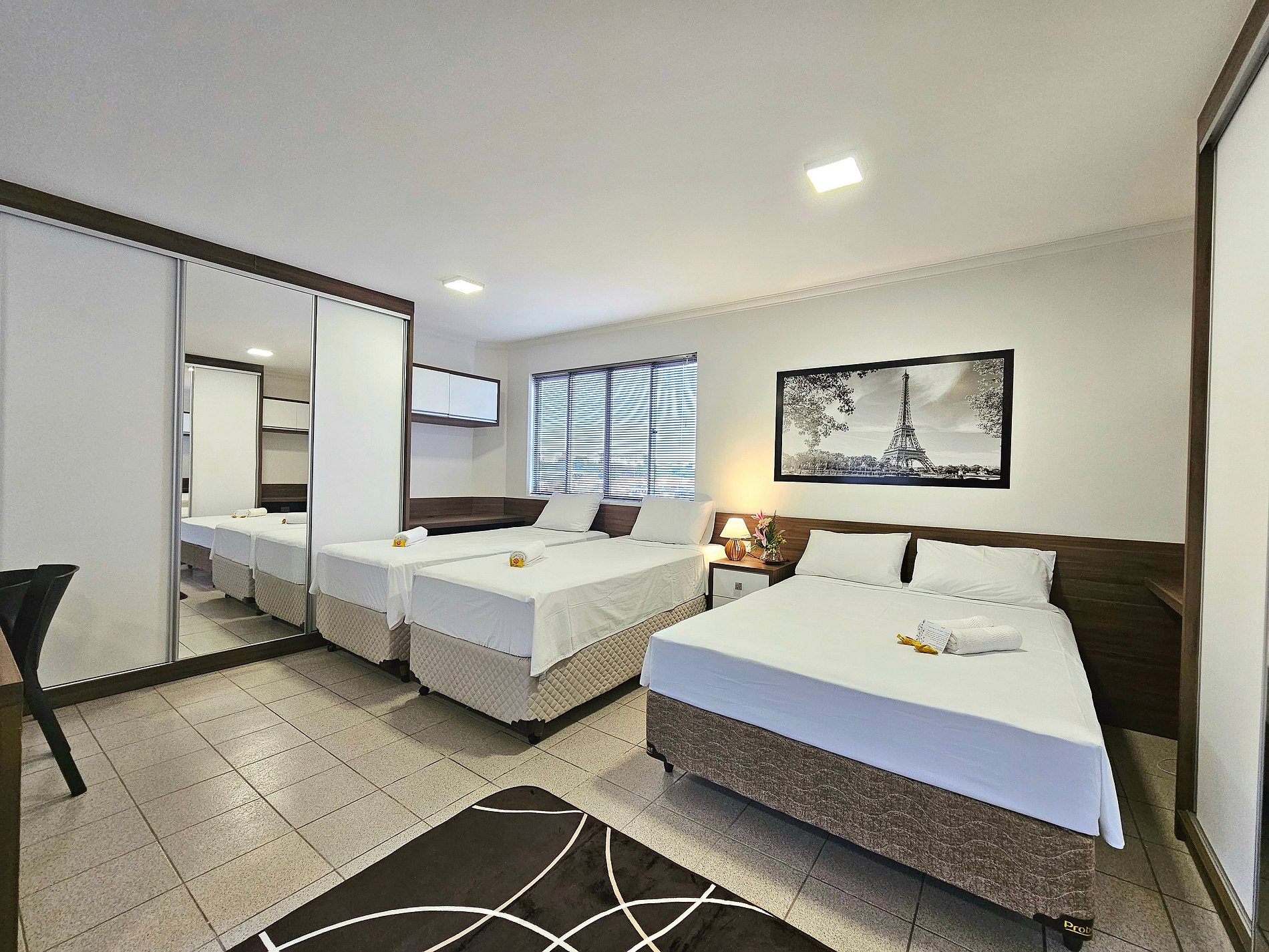 Lindo Studio no centro de Foz do Iguaçu, super amplo com 1 cama de casal + 2 de solteiro para 4 pessoas total. 44 metros quadrados. Wifi e garagem incluído. Tudo muito próximo, como farmácia, padaria 24h, restaurantes, supermercados, terminal de onibus, shopping, comercio em geral. 15/20 minutos das Cataratas, 15 minutos do Paraguai/Itaipu. Ficamos em um prédio residencial e tranquilo, terceiro andar SEM elevador. Somos anfitriões comprometidos em fazer da sua estadia a melhor experiência.