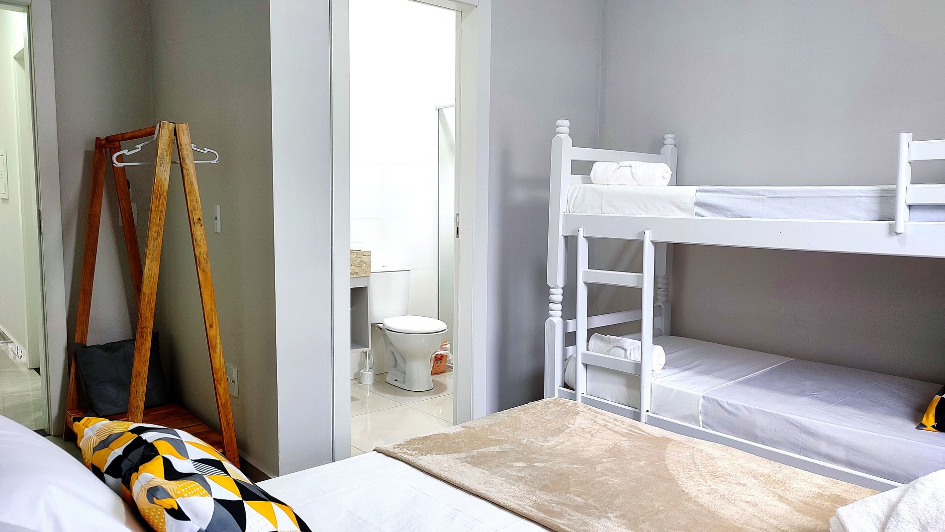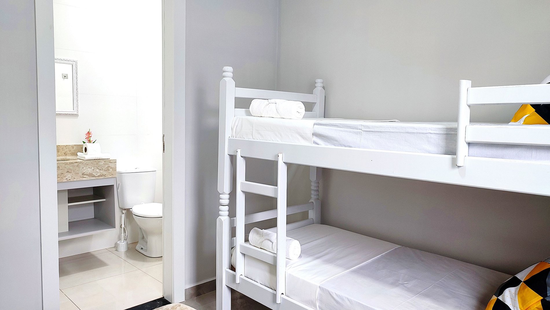 > 01 Suite com cama casal + 01 beliche (com banheiro) - 4 pessoas