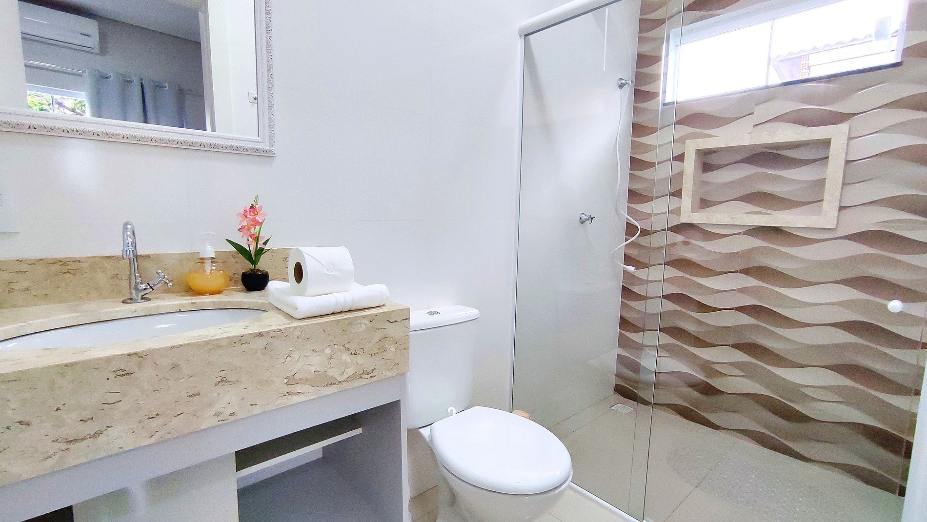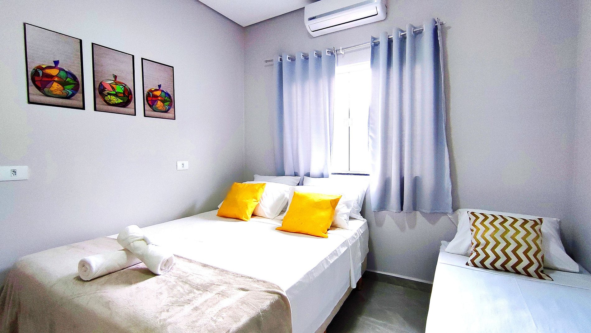 > Quartos climatizados com ar-condicionado split.