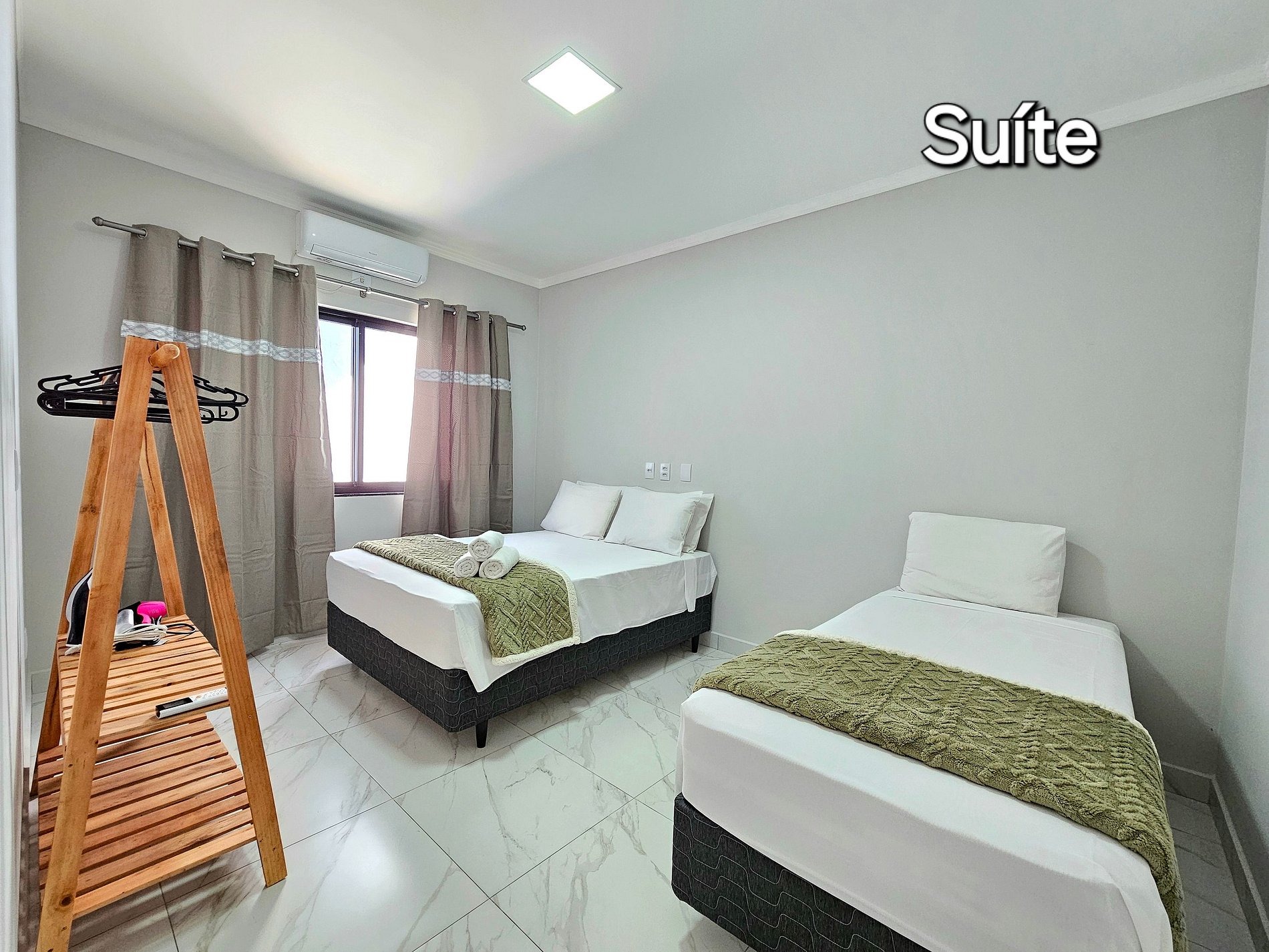 Quarto 01: Suíte com 01 cama de casal e 01 cama de solteiro (com banheiro)