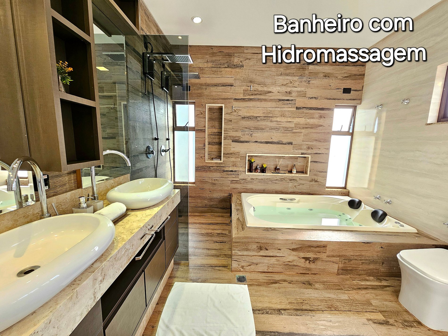 Suite 01: 01 cama kingsize (com banheiro) + 01 closet + banheira de hidromassagem