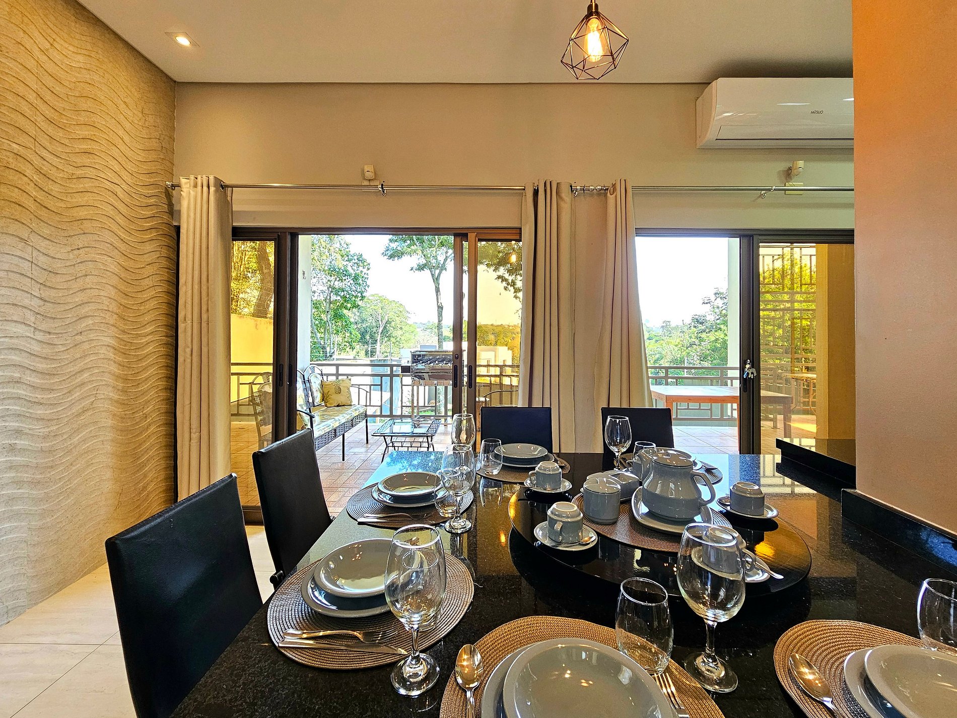 Ar condicionado nos quartos, cozinha e sala de jantar.