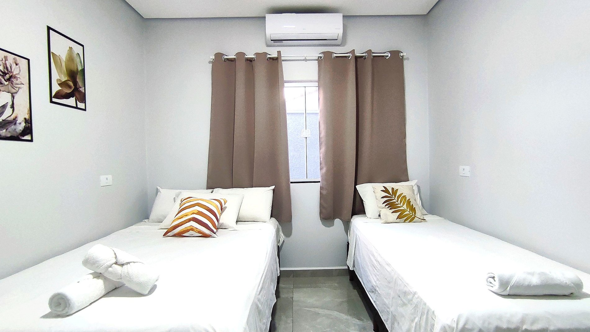 Linda casa, recém construída em ótima localização, 7 minutos das Cataratas, 5 minutos do Aeroporto e da Fronteira para a Argentina. Bairro familiar e seguro, casa ao lado de mercado. Com 1 suíte + 1 quarto e banheiro com todas as mobílias, roupas de cama e banho além dos utensílios domésticos. Quartos são climatizados. Garagem e Wifi Fibra ótica. Um dos melhores custo benefício de Foz do Iguaçu. Somos Anfitriões comprometidos em atendê-los da melhor forma possível para que sintam-se em casa.