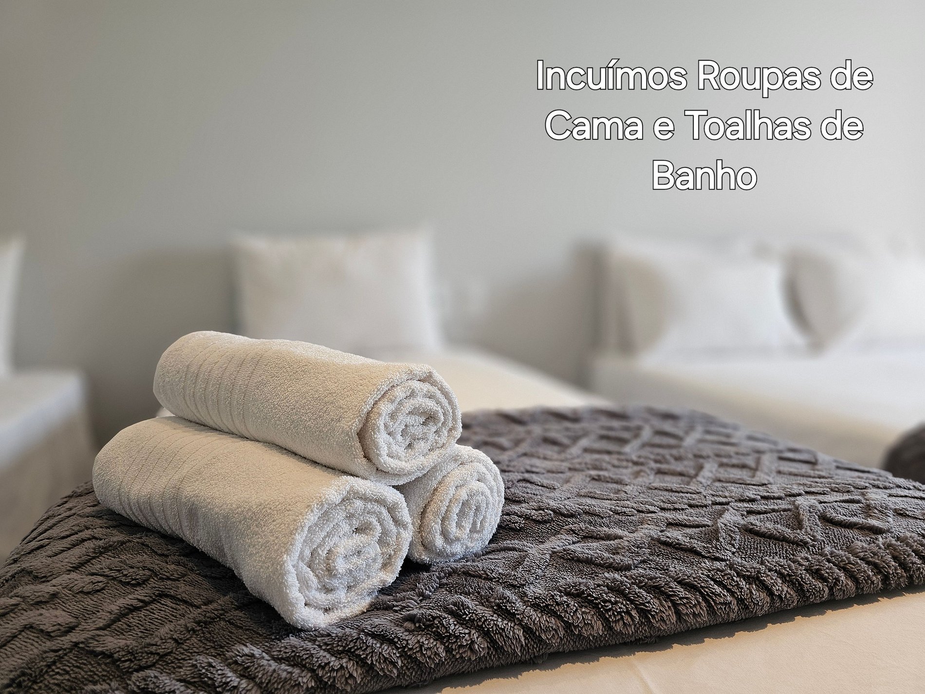 Roupas de cama Toalhas de banho (01 por hospede, independente da quantidade de diárias) e 01 toalha de rosto por banheiro