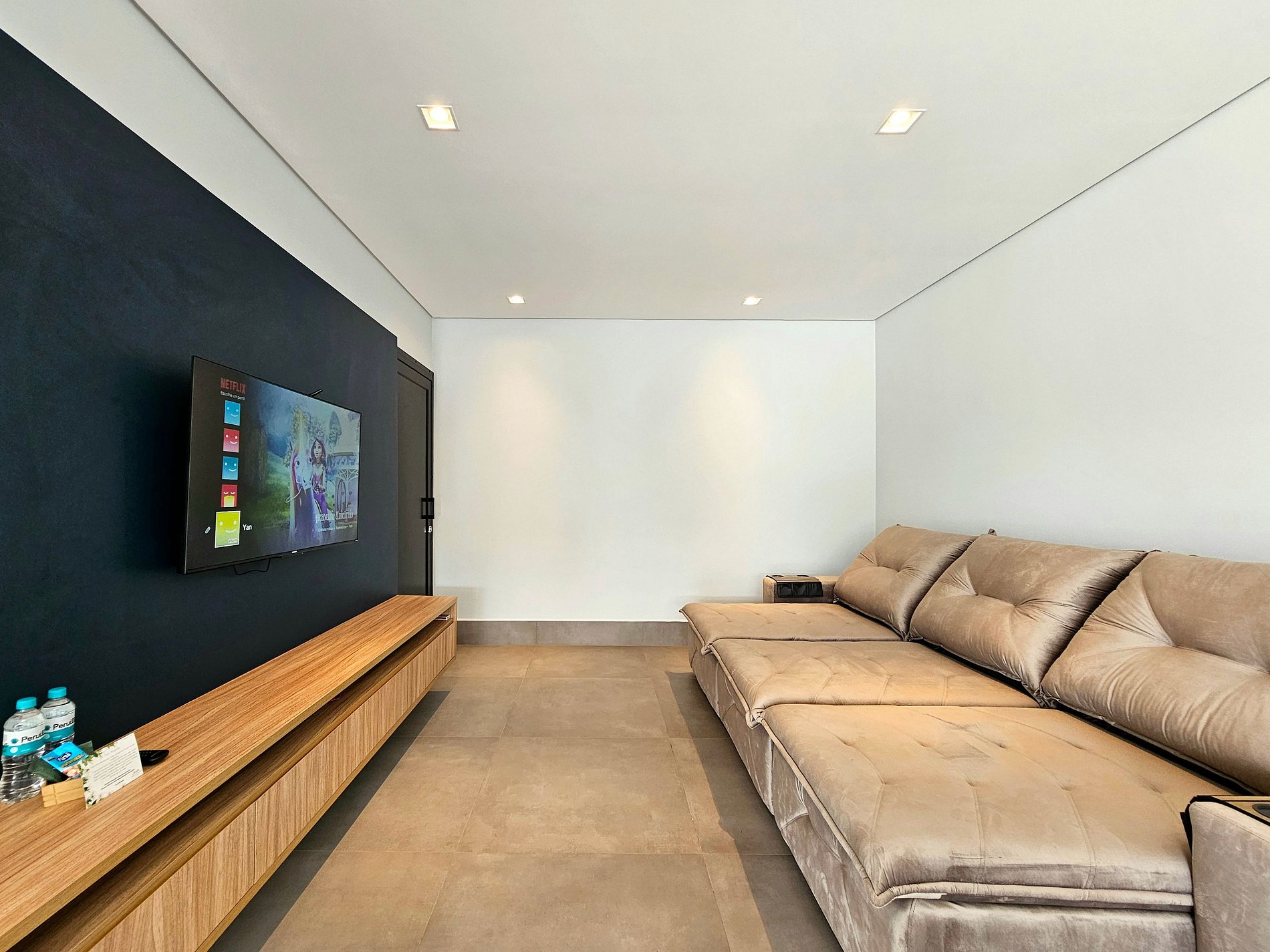 *Sala: 01 sofá cama de alta qualidade e mais 01 colchão (deixamos roupas de cama e toalhas de banho) (com ar condicionado)