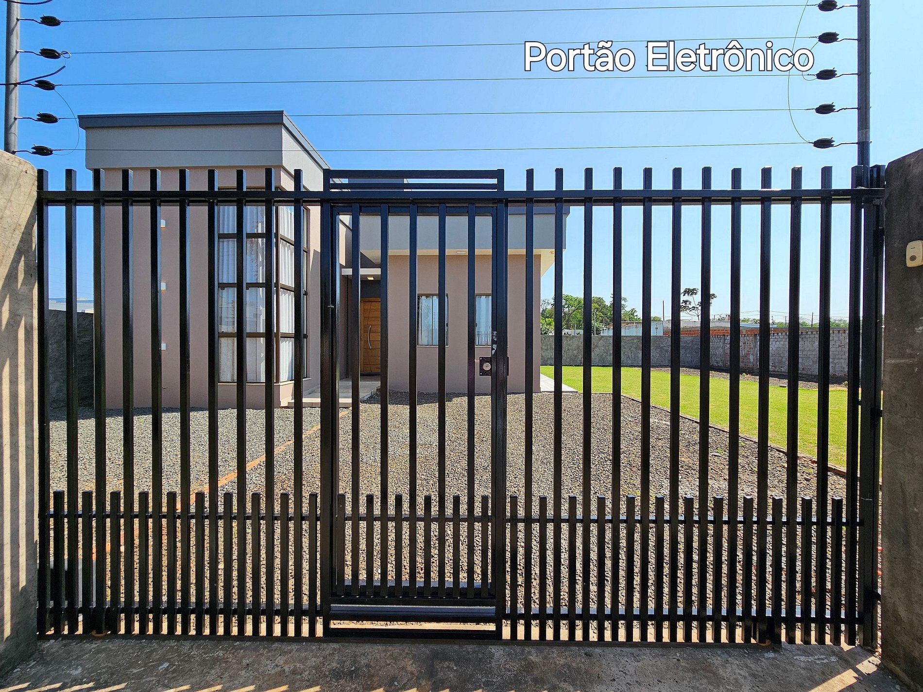 Estacionamento interno com portão eletrônico.