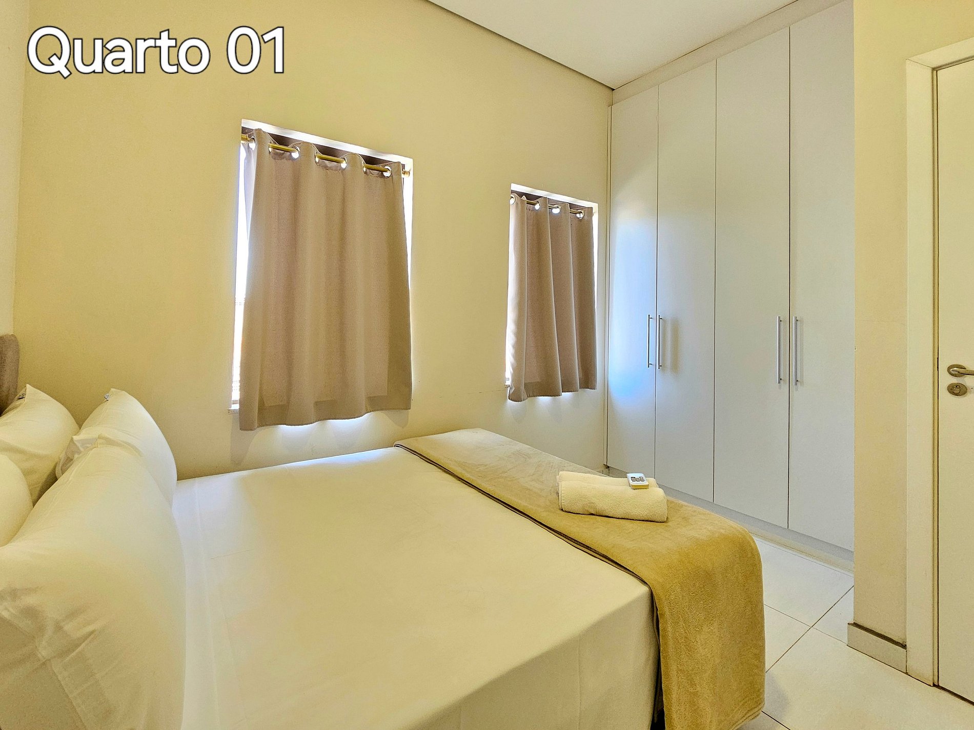 Quarto 01: 01 cama de casal queensize e 01 cama de solteiro
