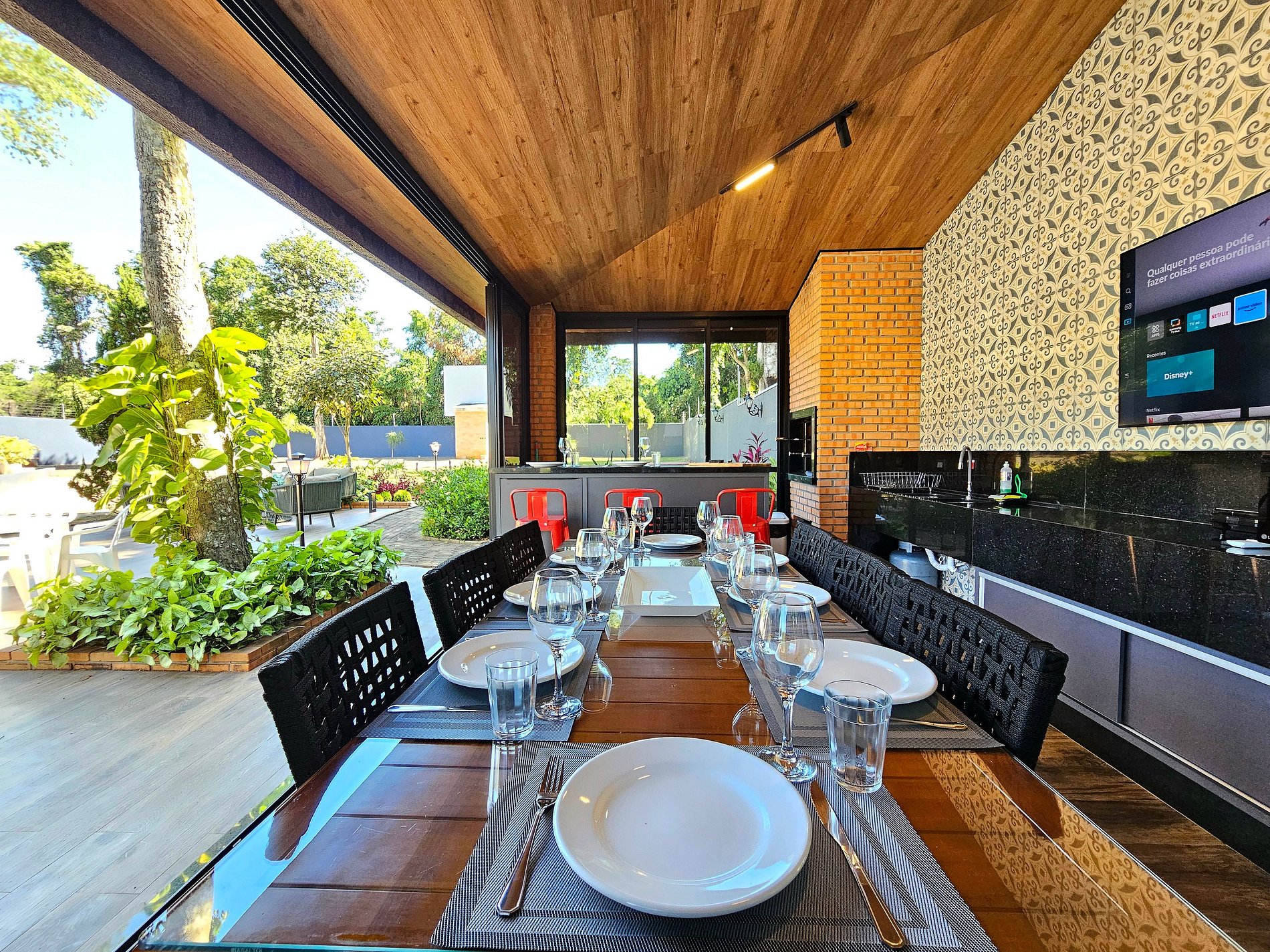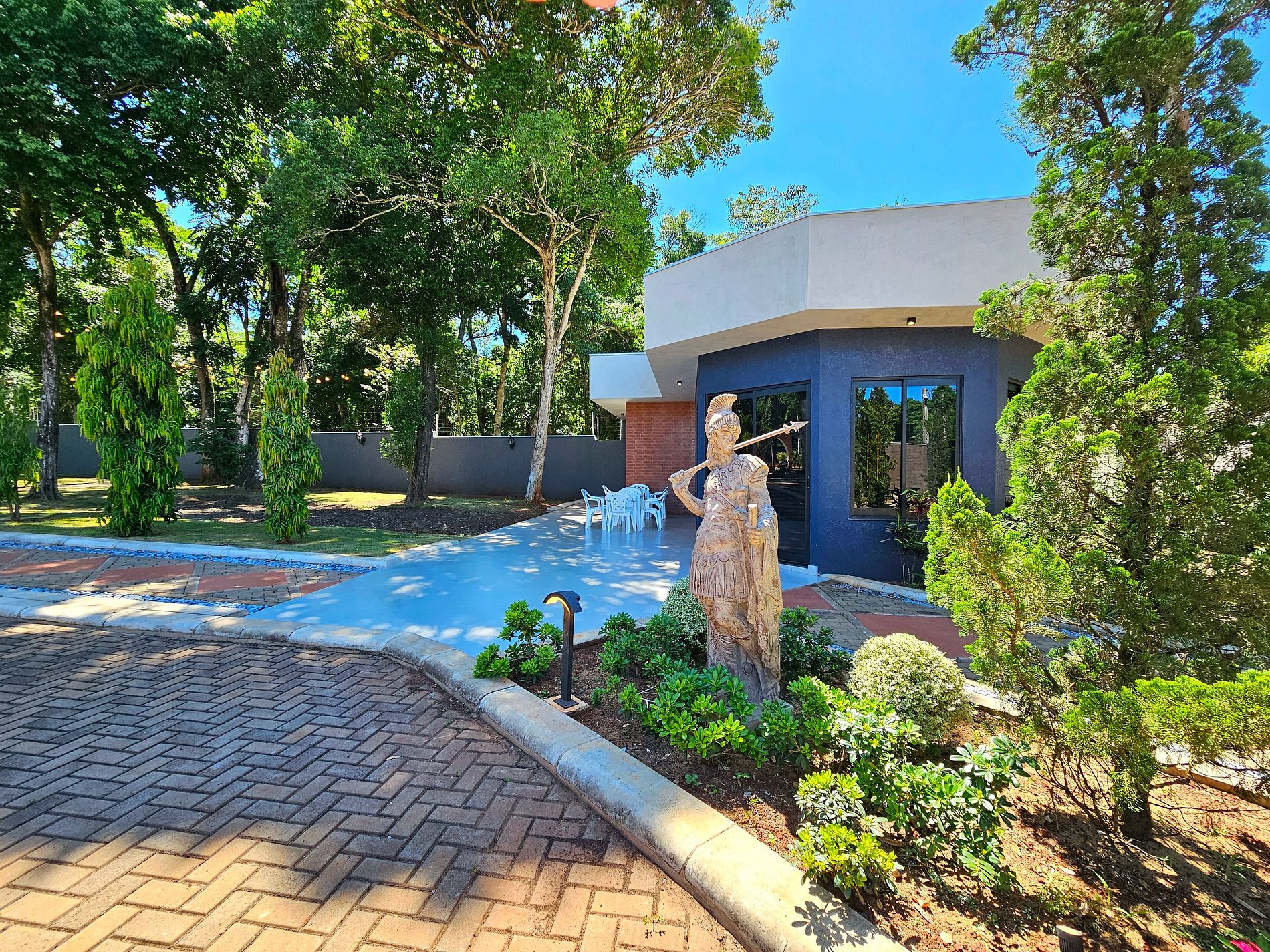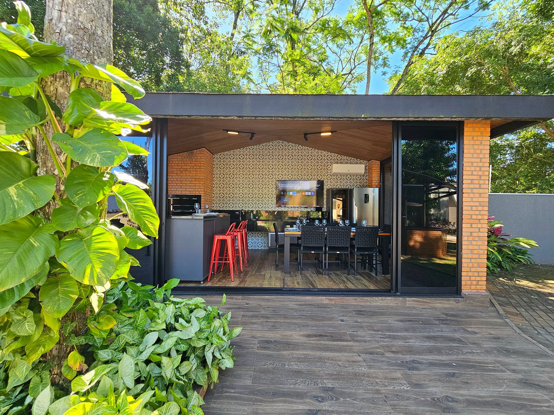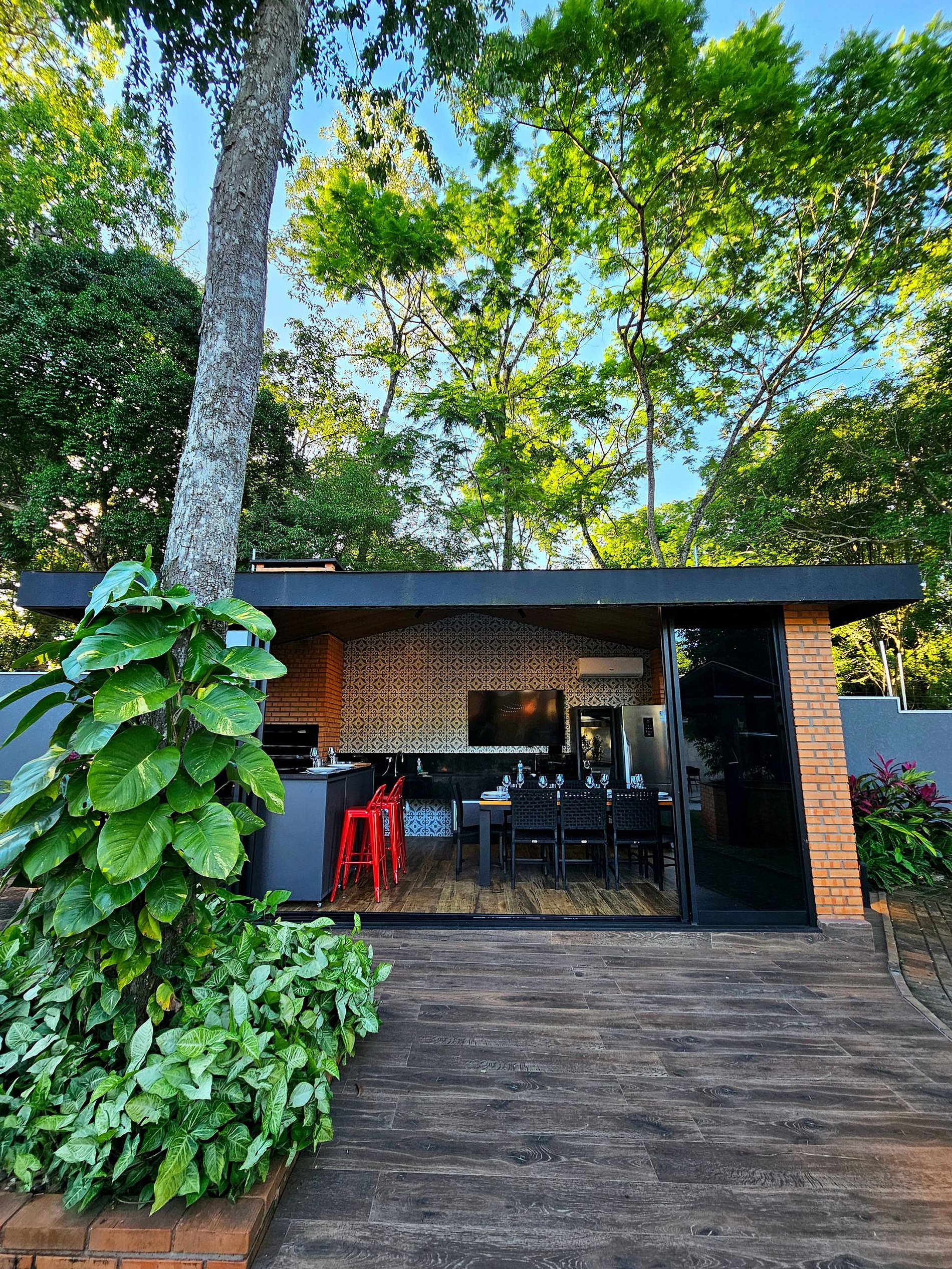 Espaço Alcázar — um refúgio sofisticado em meio à natureza, perfeito para quem busca tranquilidade e exclusividade. A propriedade oferece 3 casas integradas, acomodando de 1 a 14 pessoas com uso totalmente privativo. A poucos minutos da Av. das Cataratas, Aeroporto e Centro. Desfrute de uma linda área gourmet com churrasqueira, piscina e charmosos cantinhos para relaxar, conversar, ler e apreciar o verde. Bar opcional.