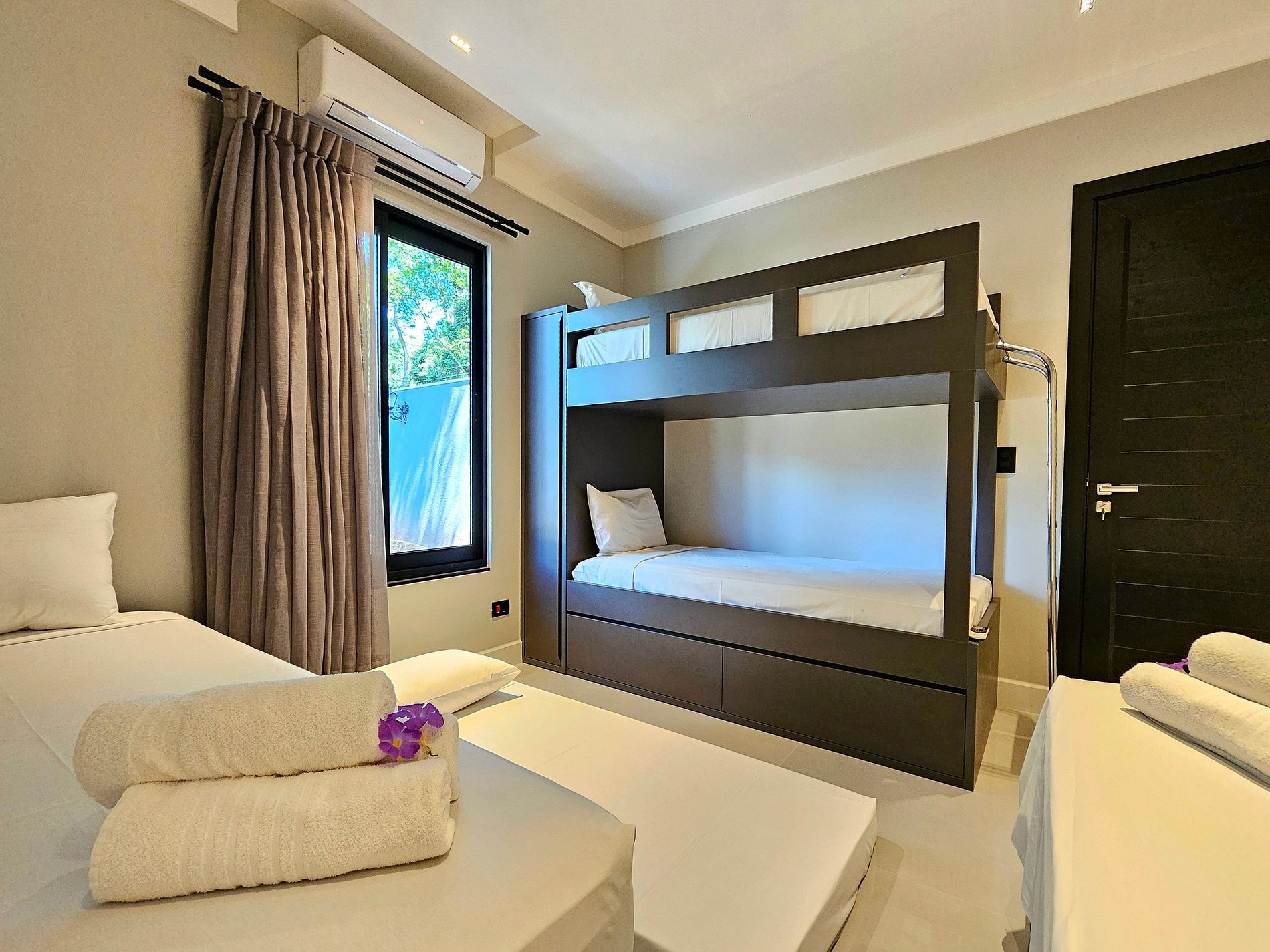 Casa 01: 01 quarto com 02 camas de solteiro + 01 beliche para 2 + 01 colchão individual + 01 sofa cama para 1 pessoa. Cozinha completa, sala de jantar e TV. 01 banheiro. Máquina lava e seca - roupas.