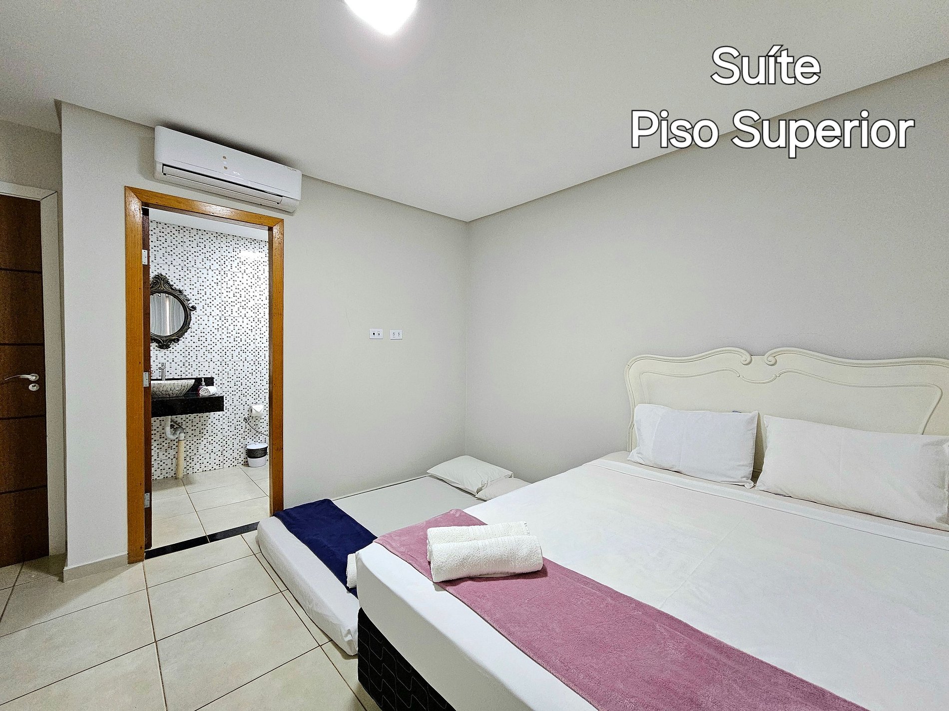 Suíte: 01 cama de casal + 01 colchão de casal (01 banheiro) com ar condicionado