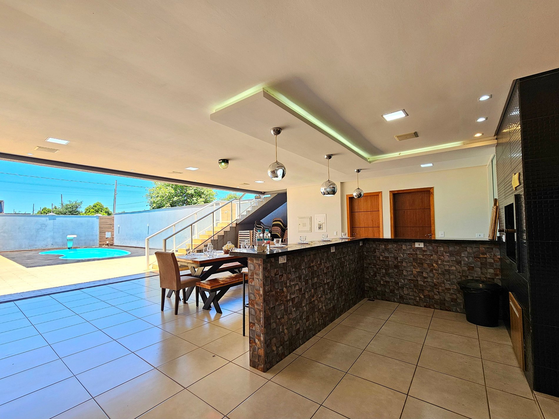 Sobrado com 4 quartos e 4 banheiros, sendo 2 quartos e 2 banheiros no térreo. Area de lazer com piscina e churrasqueira. Excelente localização, 7 minutos do Aeroporto, 10 min Cataratas, 2 minutos da Argentina e 20 do Paraguai, 5 min do Shopping Catuaí e 5 min do centro. Seu PET é bem-vindo. Incluso roupa de cama e toalha banho. Equipada com os utensílios para cozinhar. Estacionamento interno para 5 carros. Bairro tranquilo, supermercado na esquina. Somos anfitriões comprometidos com sua estadia.
