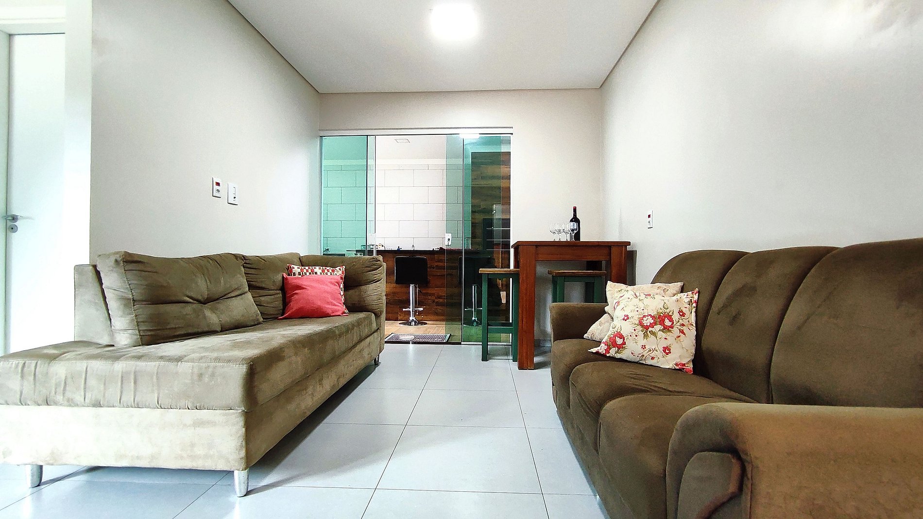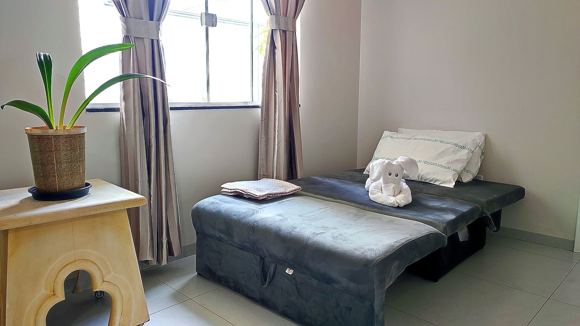 > 01 sofá cama na sala para 01 pessoa, pode ser usado para 02 crianças (deixamos travesseiros, roupas de cama e toalha de banho também)