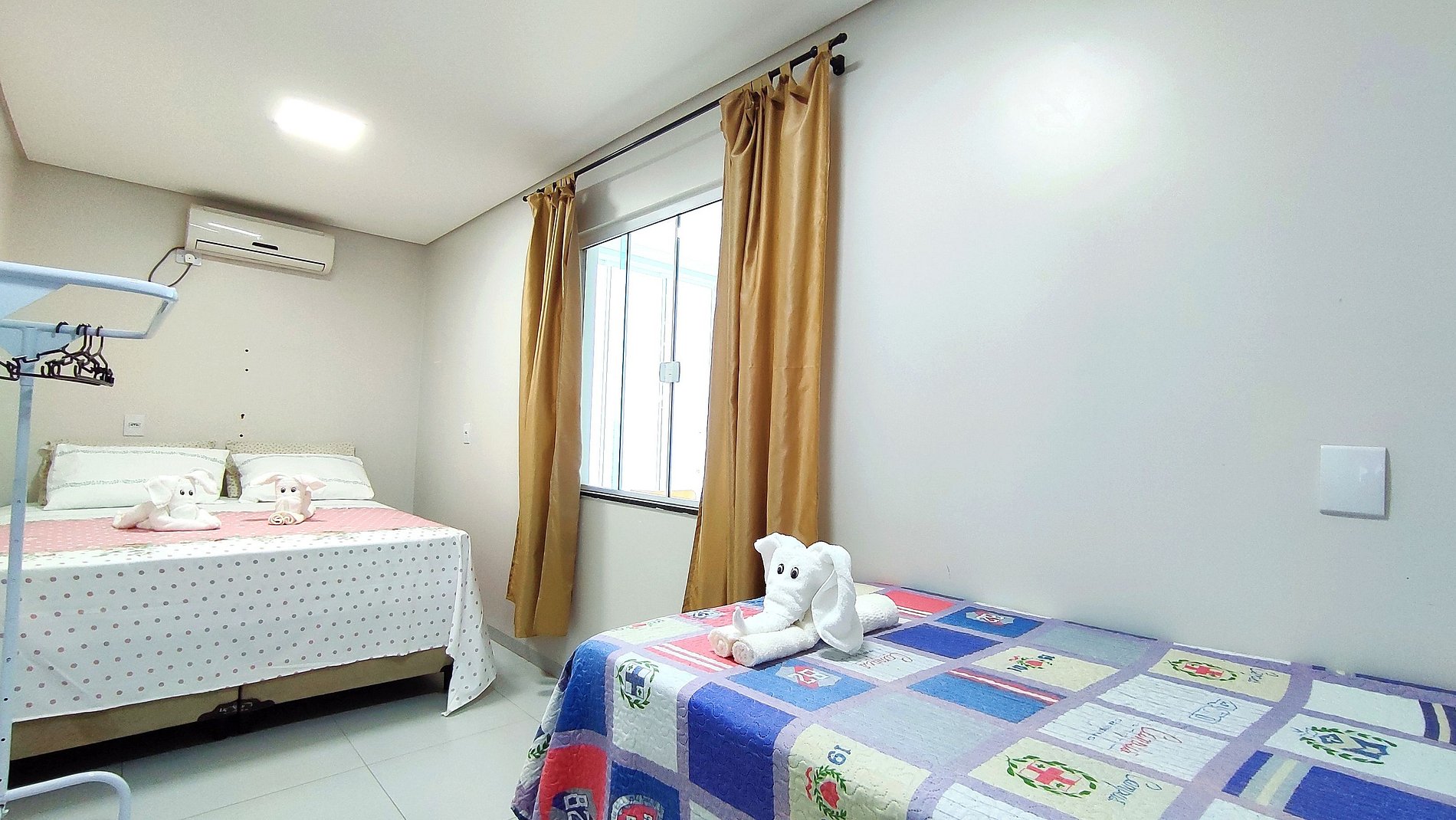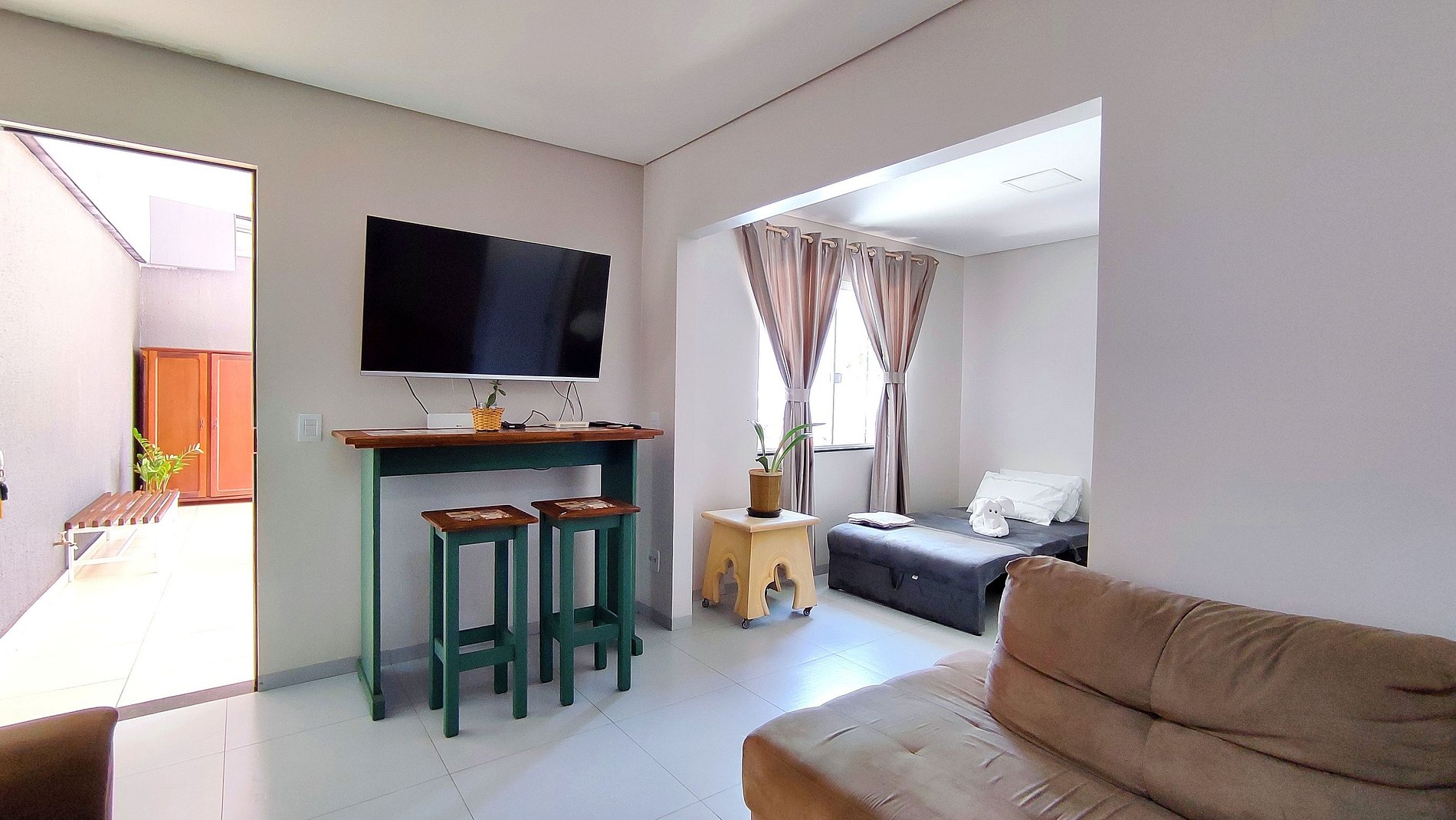 > 01 sofá cama na sala para 01 pessoa, pode ser usado para 02 crianças (deixamos travesseiros, roupas de cama e toalha de banho também)