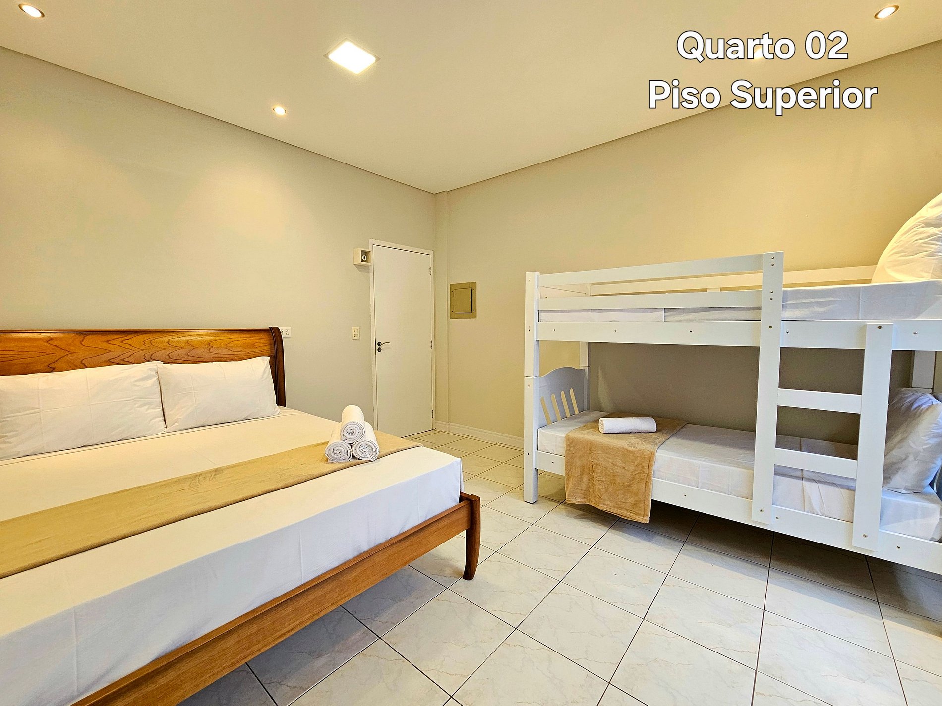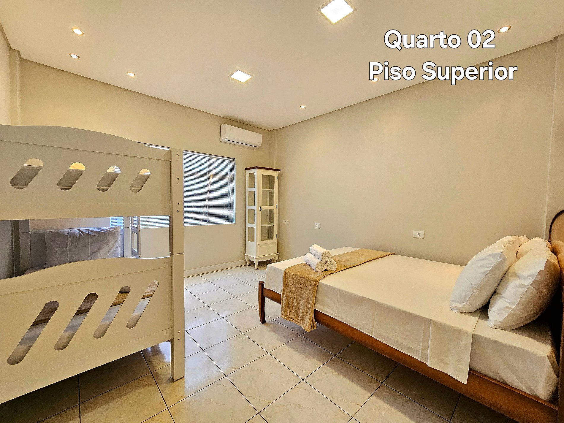 01 quarto: 01 cama queensize + 01 beliche para 2