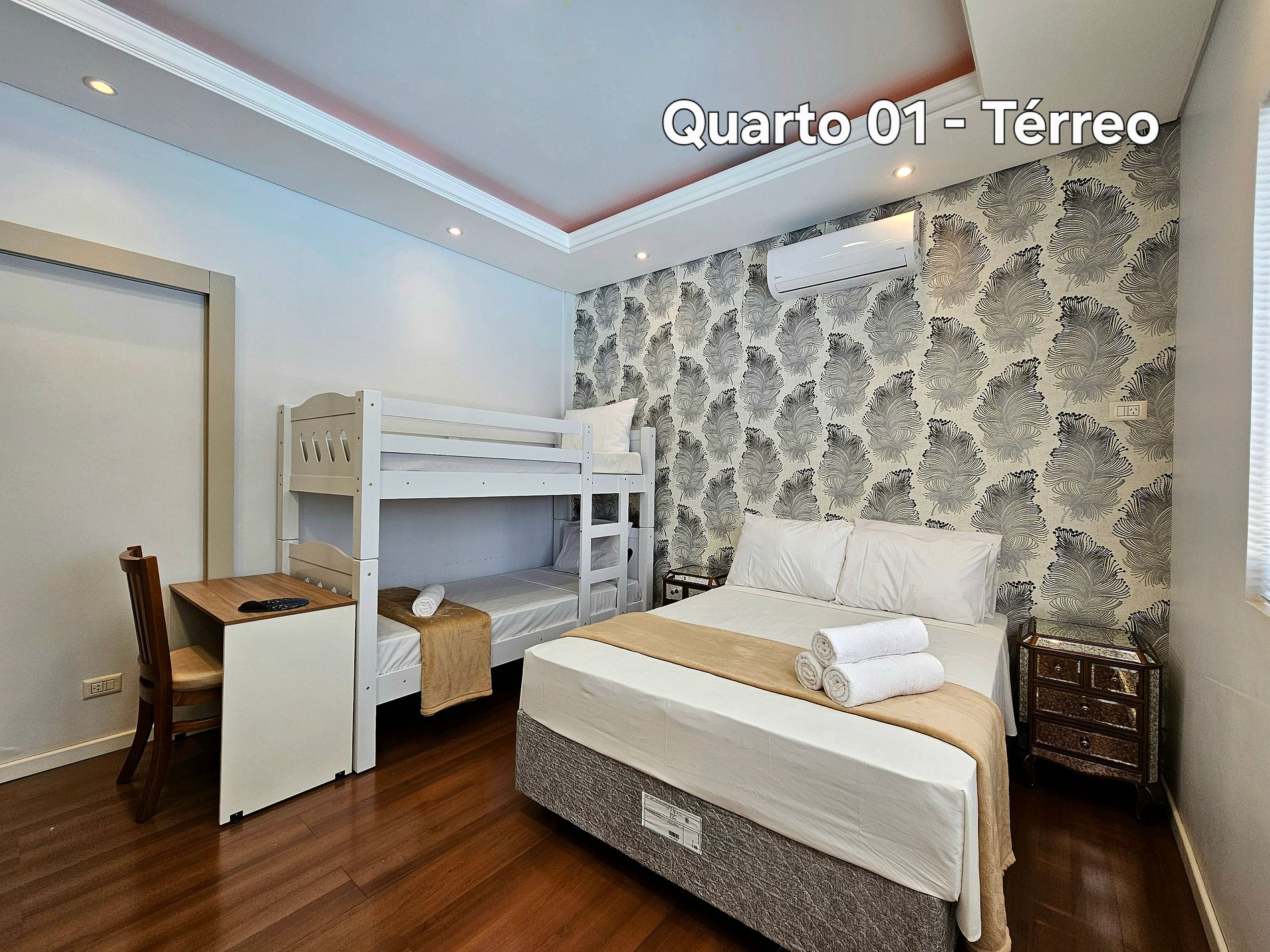 01 quarto: 01 cama casal + 01 beliche para 2
