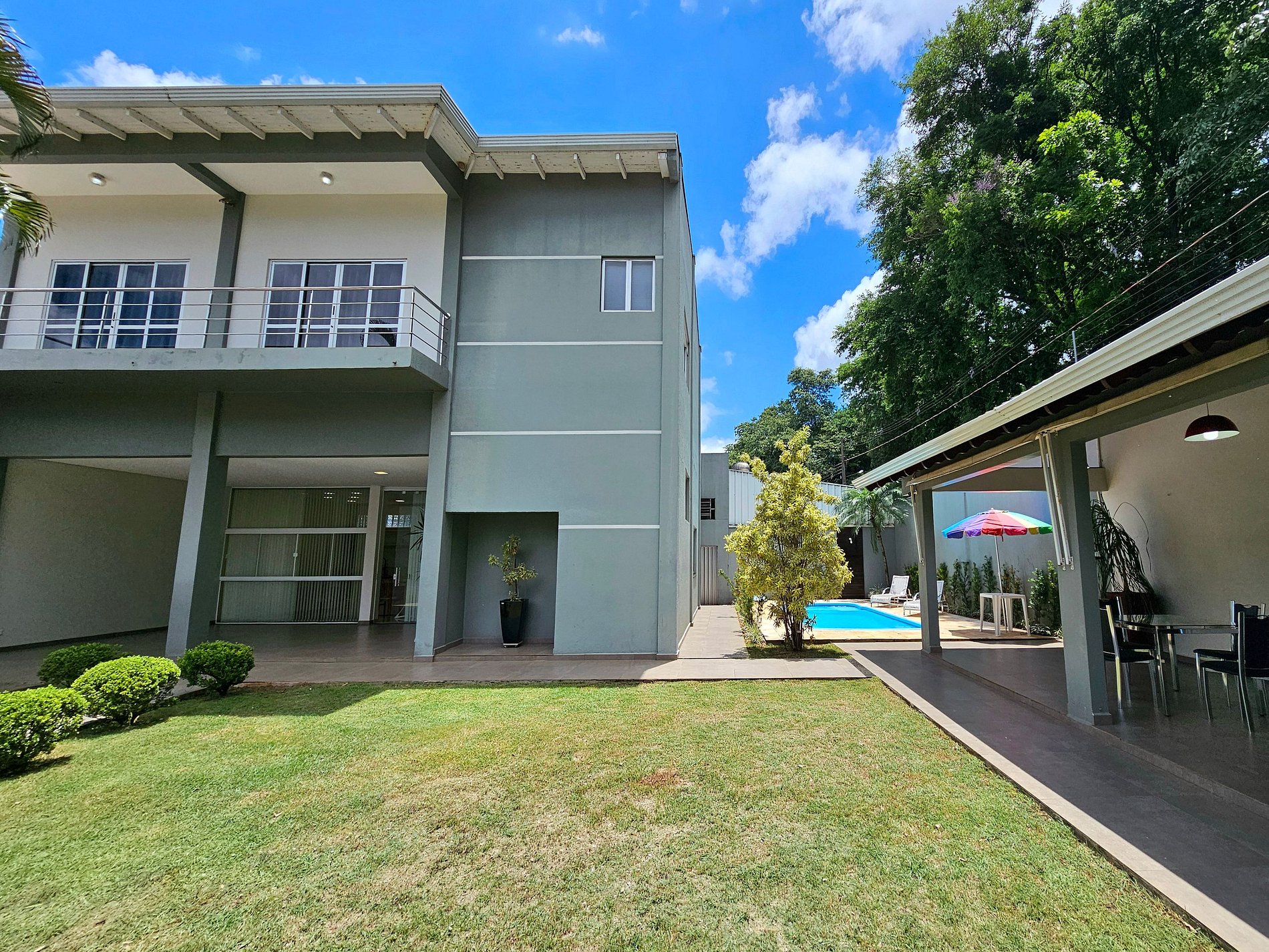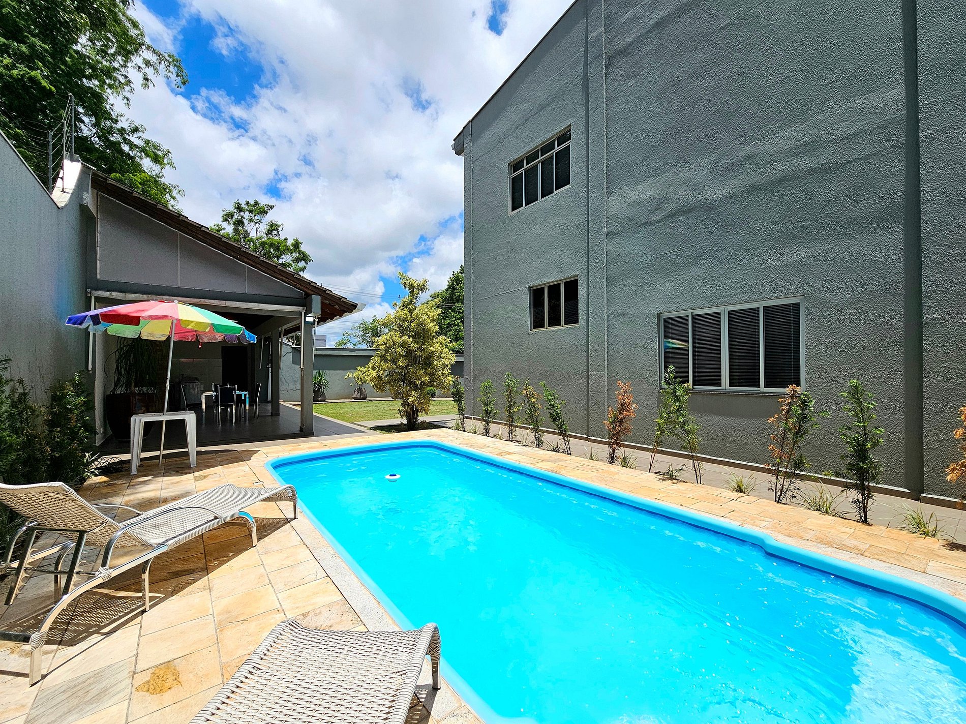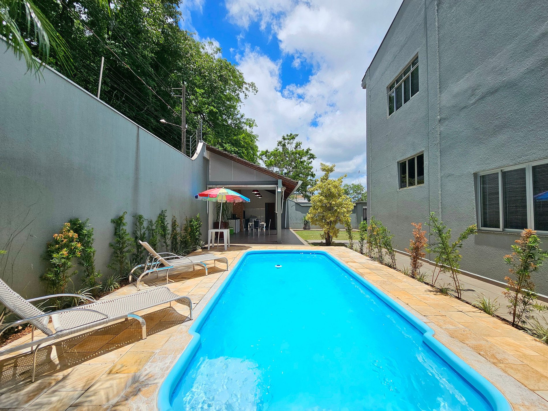 Linda casa alto padrão, em ótima localização no centro de Foz, 15 a 20 dos atrativos Cataratas e Paraguai. Com piscina e churrasqueira, temos 1 quarto para 4 pessoas no térreo com banheiro e 2 quartos no piso superior, 4 banheiros no total, completa com todas as mobílias, roupas de cama e banho além dos utensílios domésticos. Todos os ambientes climatizados. Dispomos de garagem e Wifi. Se hospede em alto estilo. Somos Anfitriões comprometidos em atendê-los da melhor forma possível.