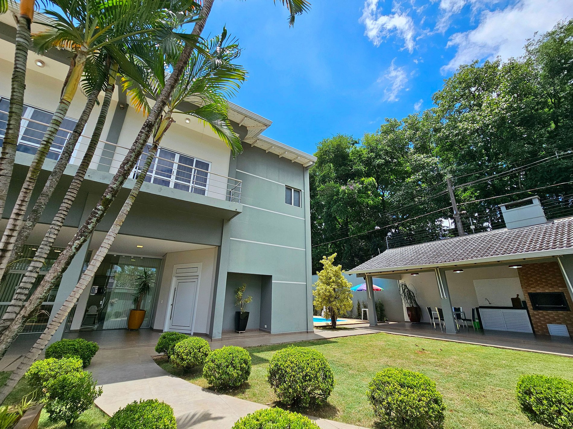 Linda casa alto padrão, em ótima localização no centro de Foz, 15 a 20 dos atrativos Cataratas e Paraguai. Com piscina e churrasqueira, temos 1 quarto para 4 pessoas no térreo com banheiro e 2 quartos no piso superior, 4 banheiros no total, completa com todas as mobílias, roupas de cama e banho além dos utensílios domésticos. Todos os ambientes climatizados. Dispomos de garagem e Wifi. Se hospede em alto estilo. Somos Anfitriões comprometidos em atendê-los da melhor forma possível.