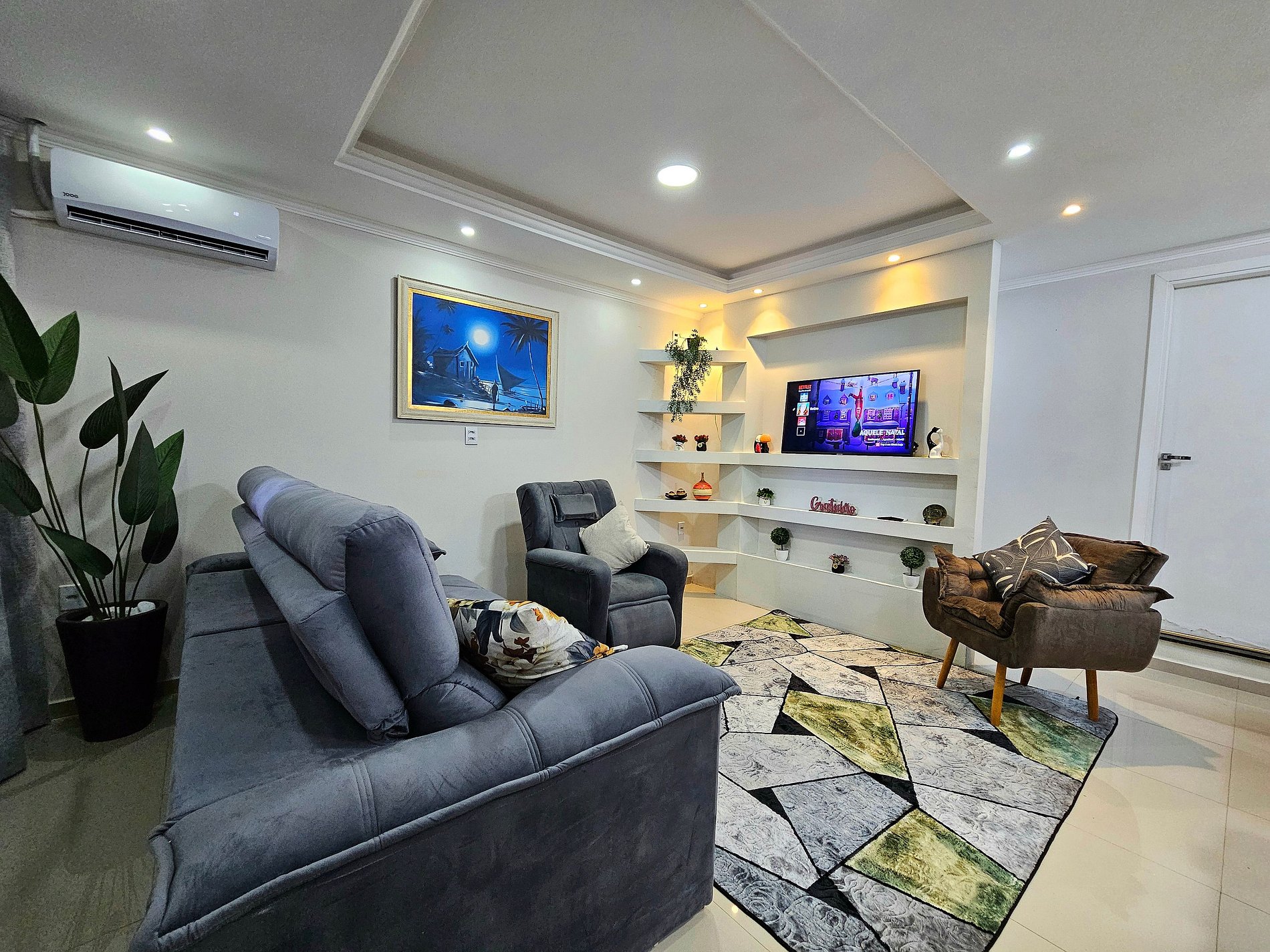 > Sala com smartTV ar condicionado