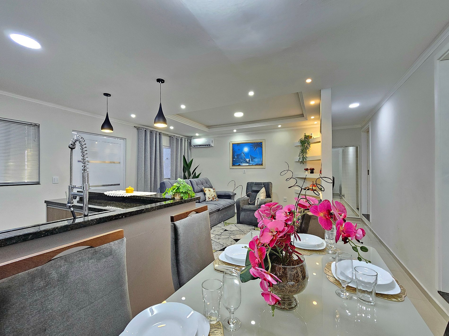> Quartos climatizados com ar-condicionado split. Sala e cozinha climatizada também.